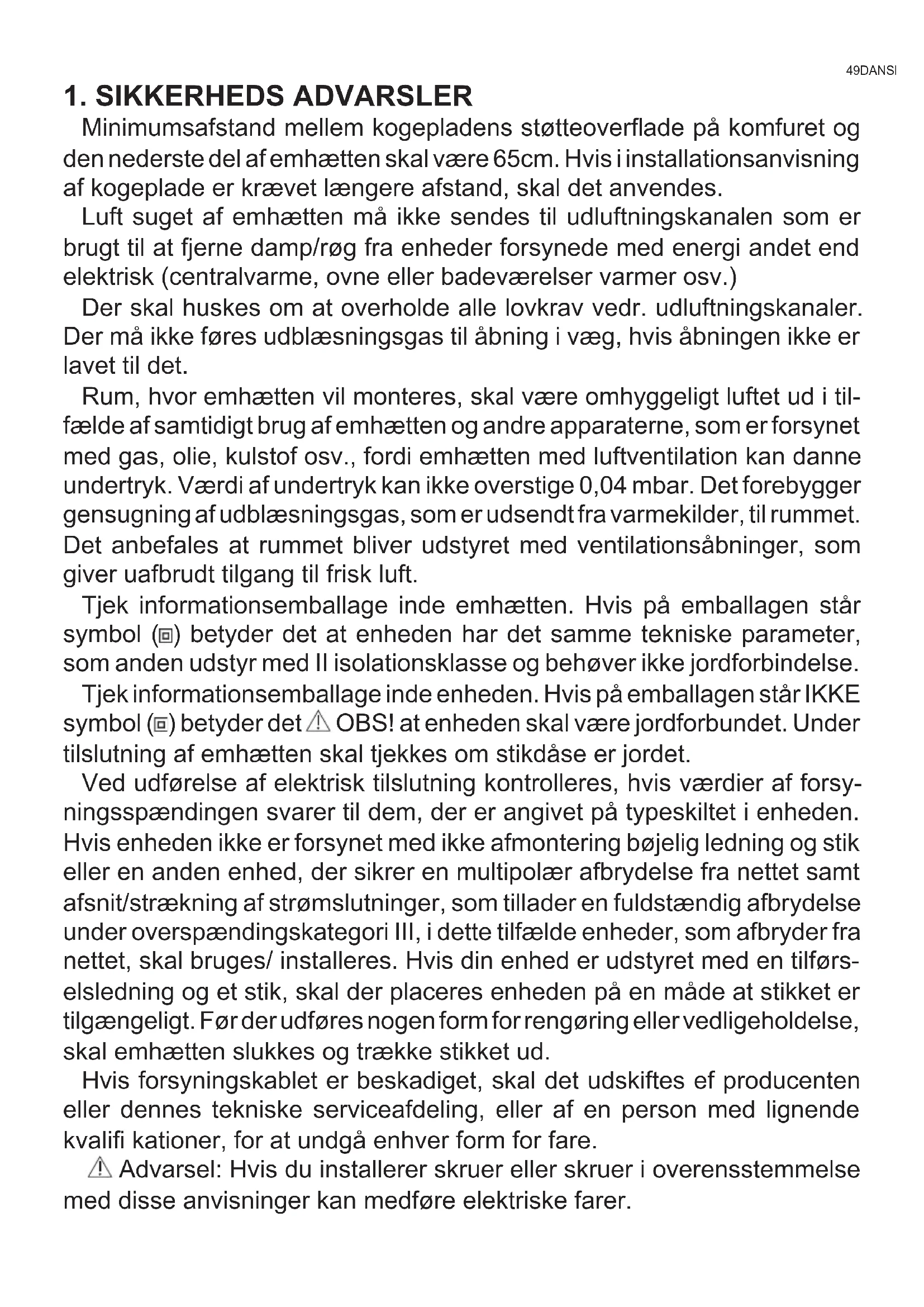 1. SIKKERHEDS ADVARSLER
