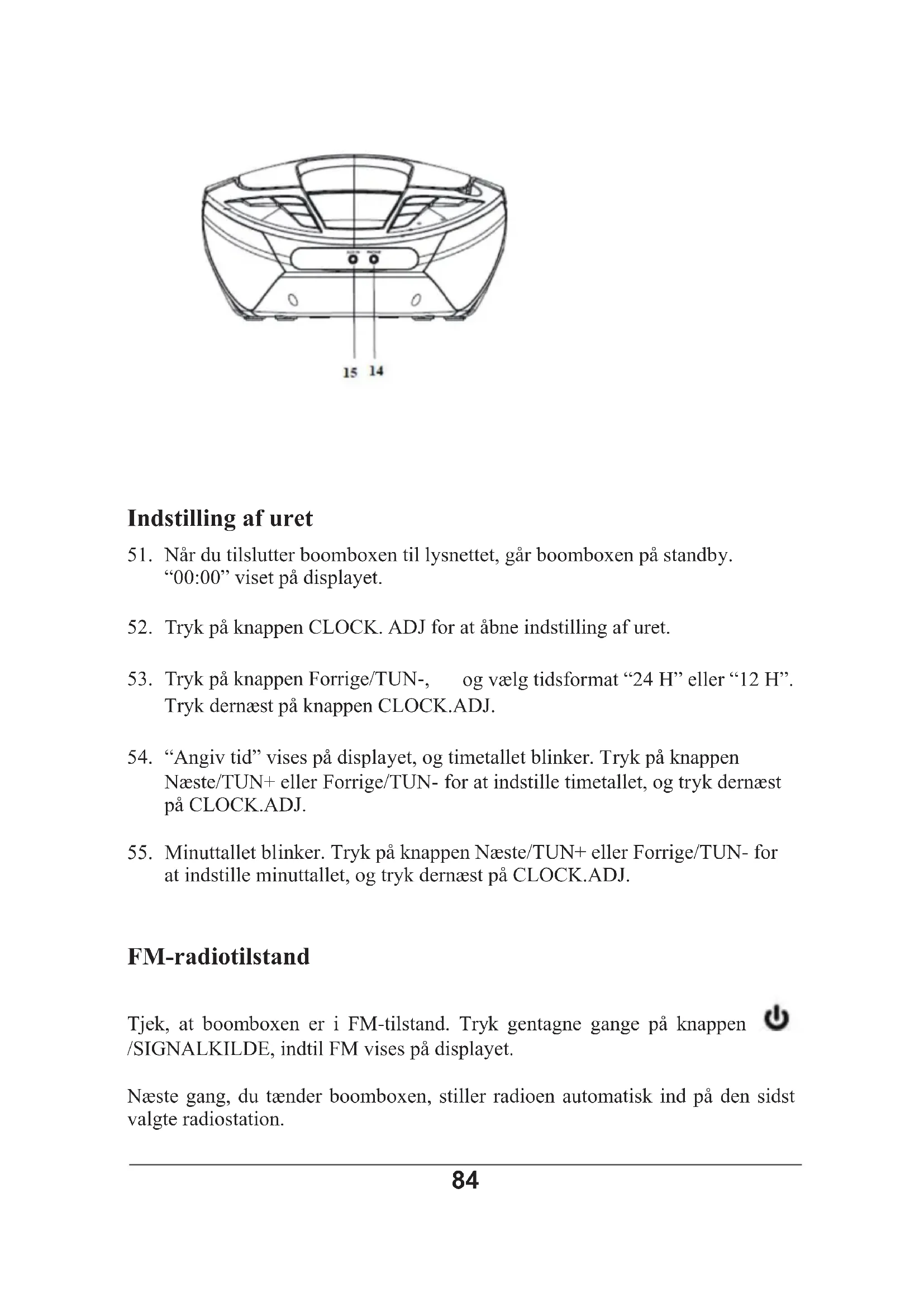 21. I FM-tilstand kan du trykke på knappen FM SCAN for at starte en