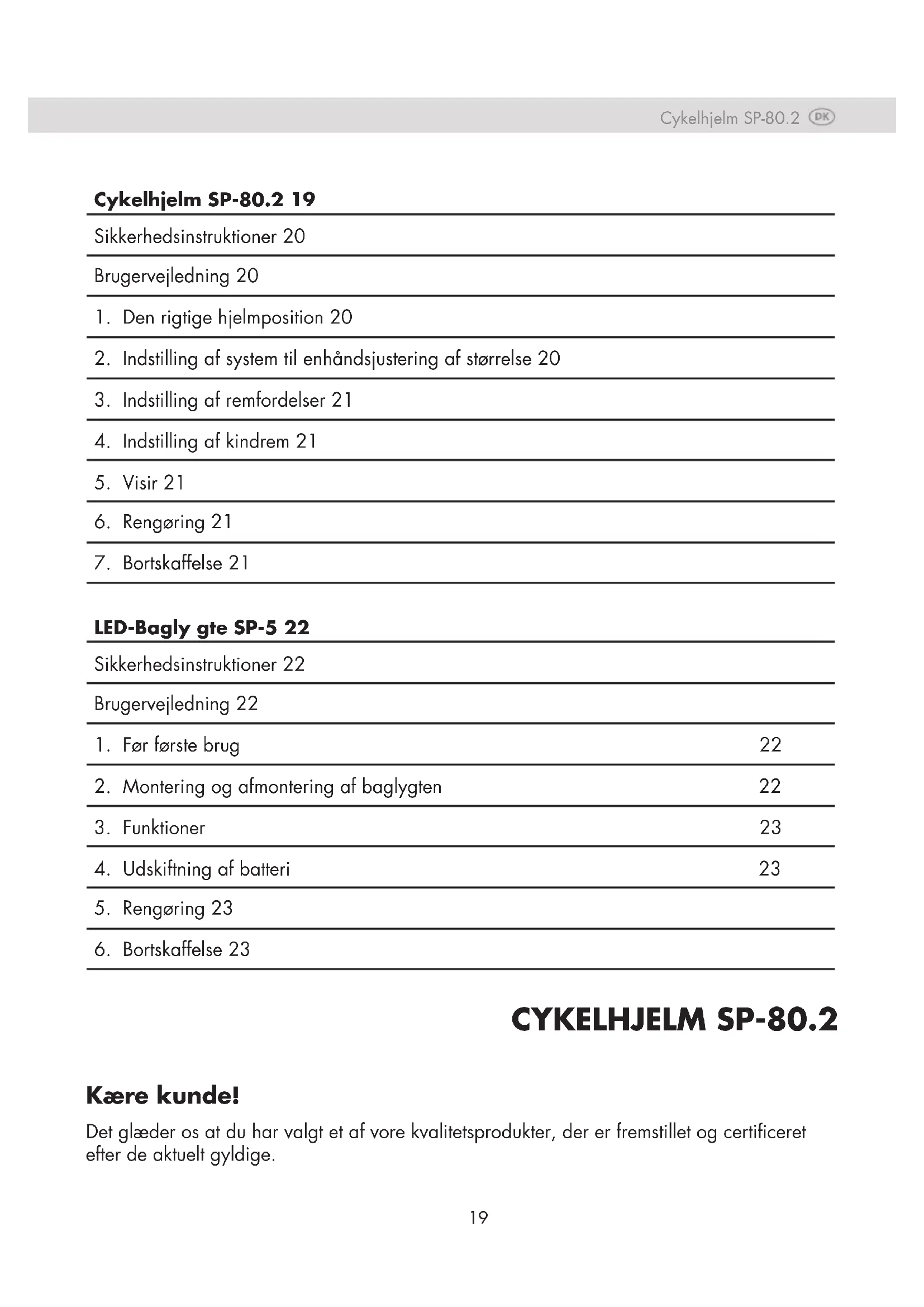 Cykelhjelm SP-80.2 Sikkerhedsinstruktioner