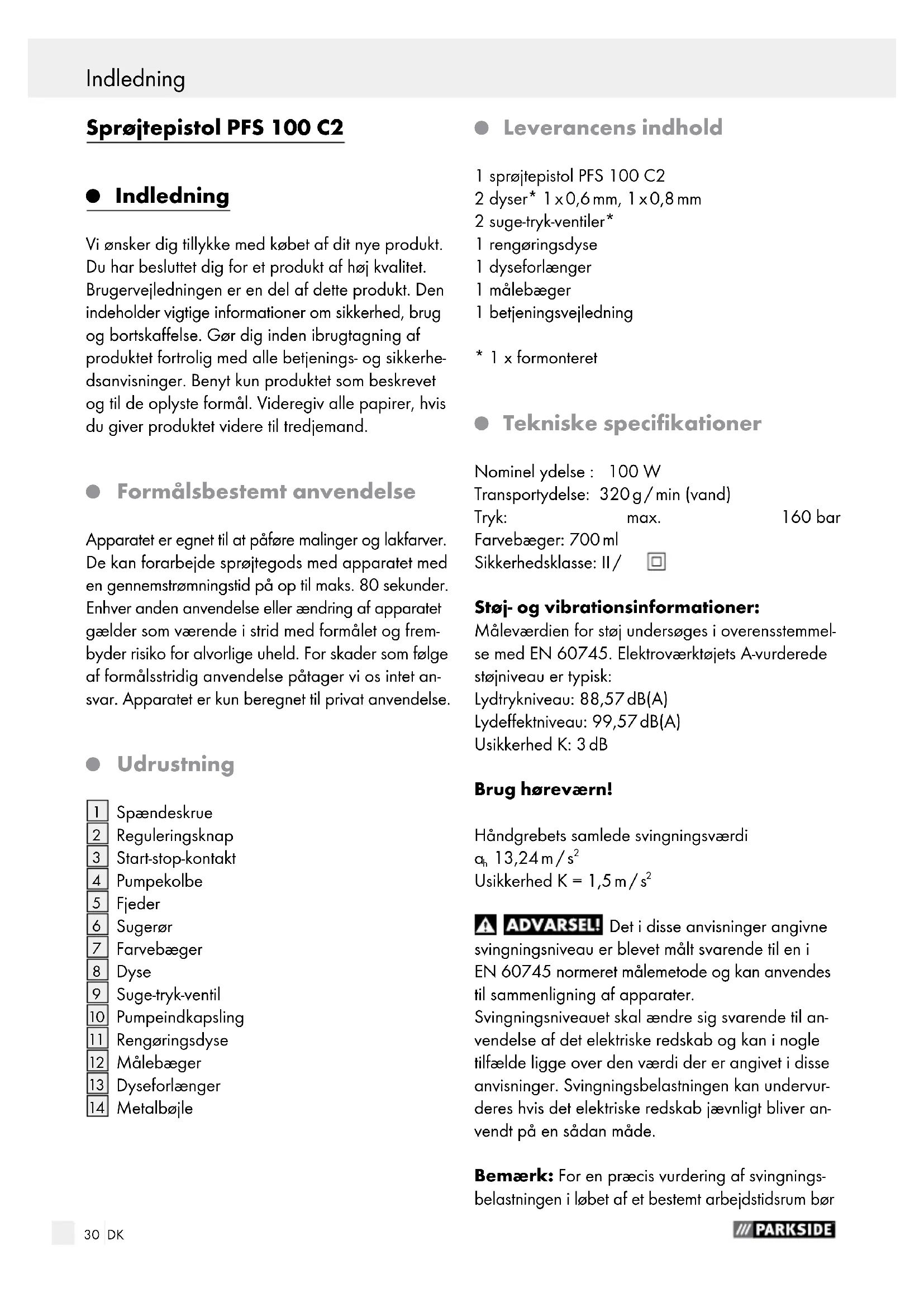 PFS 100 C2 - Malespray PARKSIDE - Gratis brugsanvisning og manual
