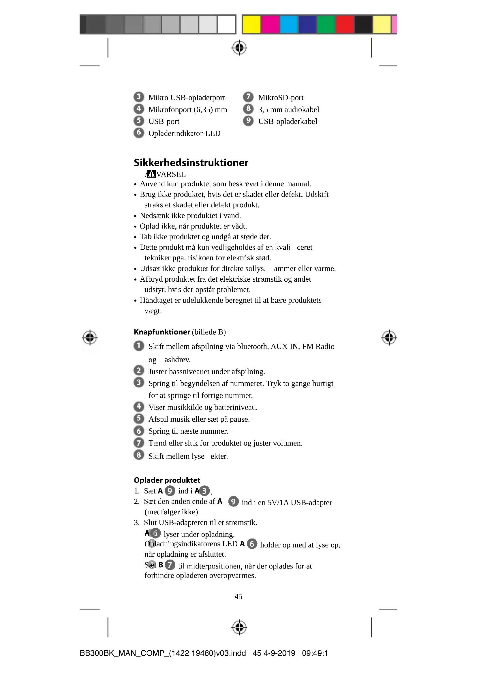 - Ikke lad hvis produktet er vått.