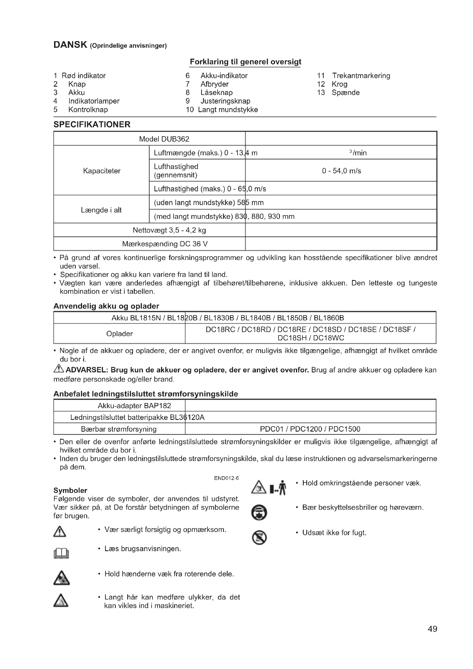 Download vejledningen til din Løvblæser i PDF-format gratis! Find din vejledning DUB362Z - MAKITA og tag din elektroniske enhed tilbage i hånden. På denne side er alle dokumenter nødvendige for brugen af din enhed offentliggjort. DUB362Z af mærket MAKITA.