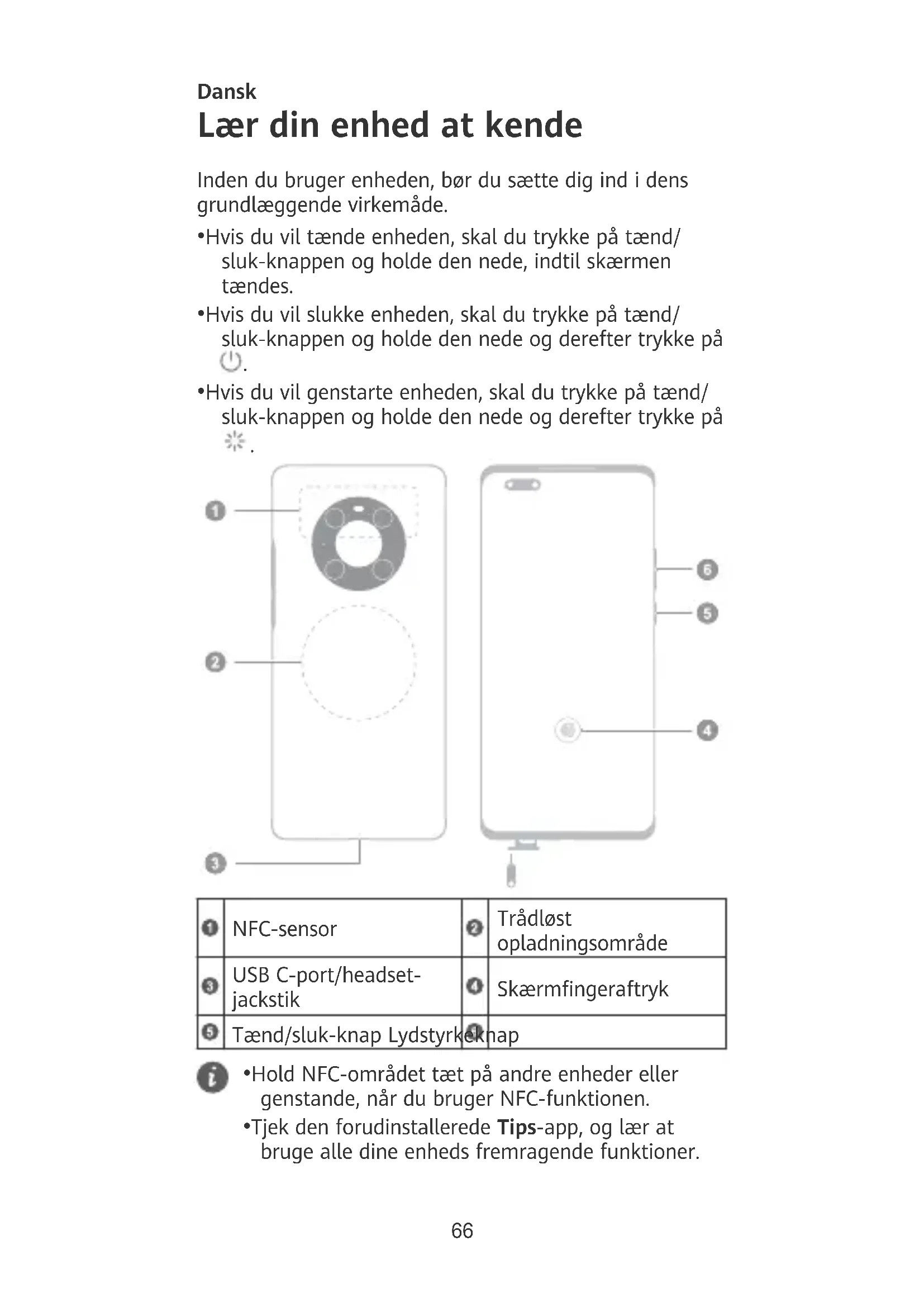 - Tjek den forudinstallerede Tips-app, og lær at bruge alle dine enheds fremragende funktioner. 66Introduktion