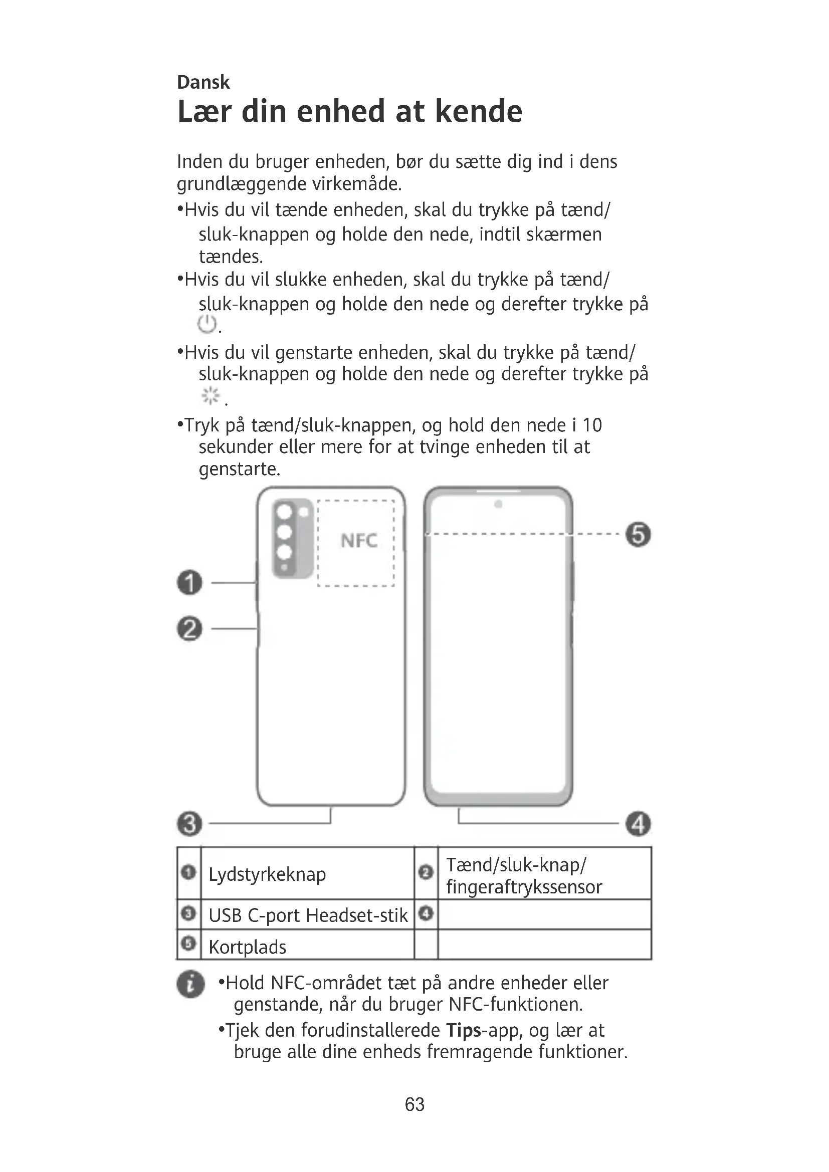 - Tjek den forudinstallerede Tips-app, og lær at bruge alle dine enheds fremragende funktioner. 63Introduktion