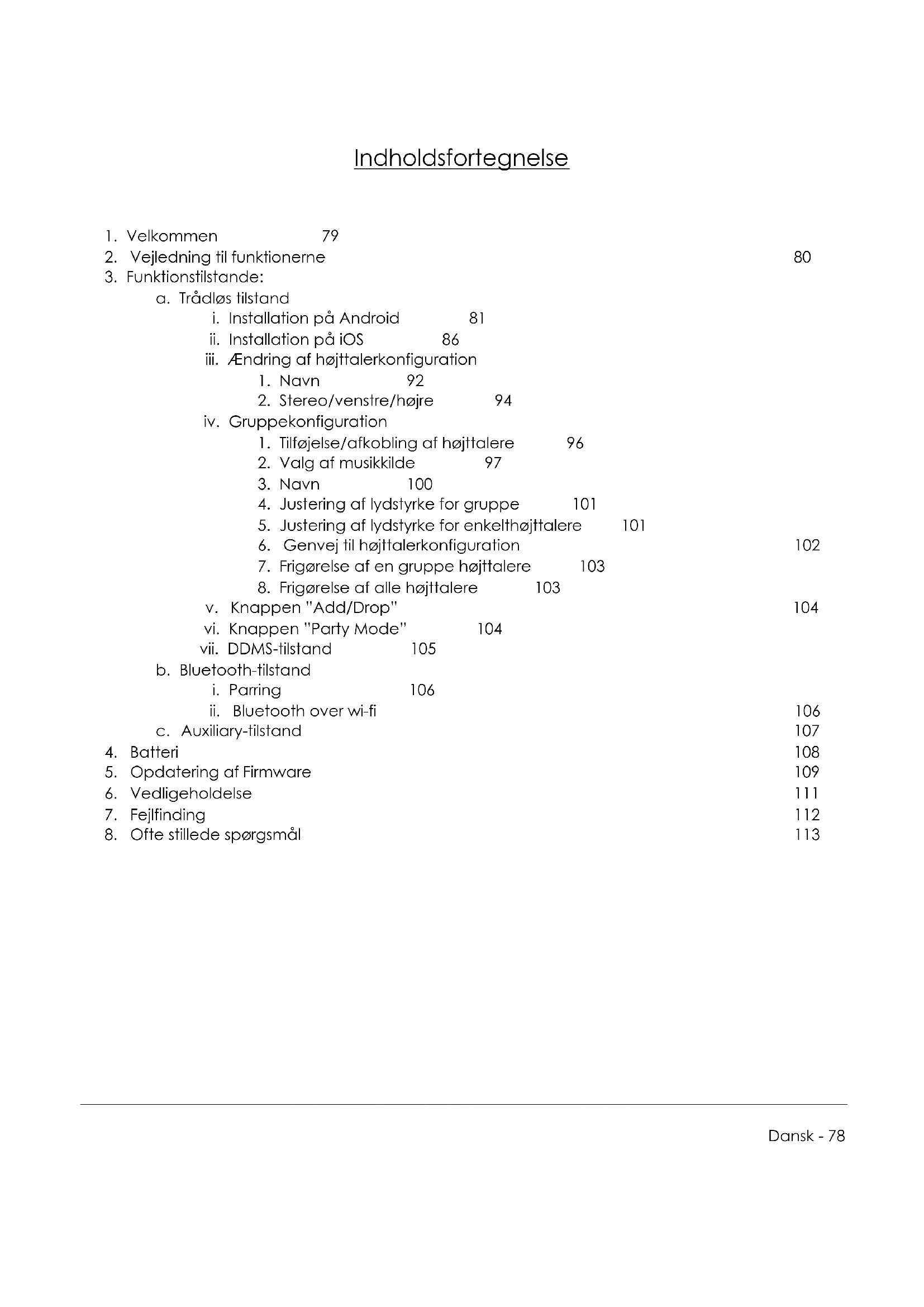 8. Frigørelse af alle højttalere 103