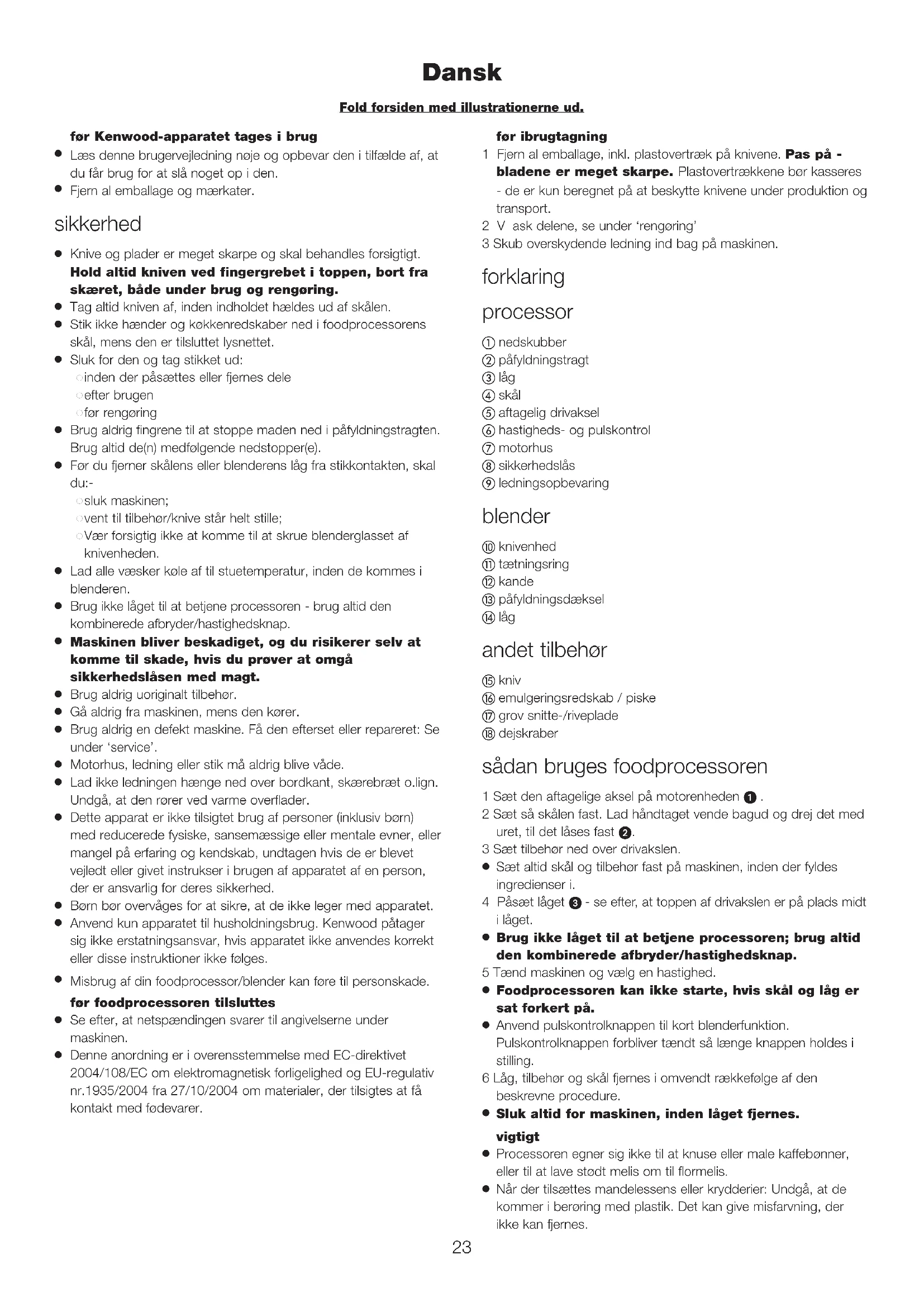 Anvend kun apparatet til husholdningsbrug. Kenwood påtager sig ikke erstatningsansvar, hvis apparatet ikke anvendes korrekt eller disse instruktioner ikke følges.