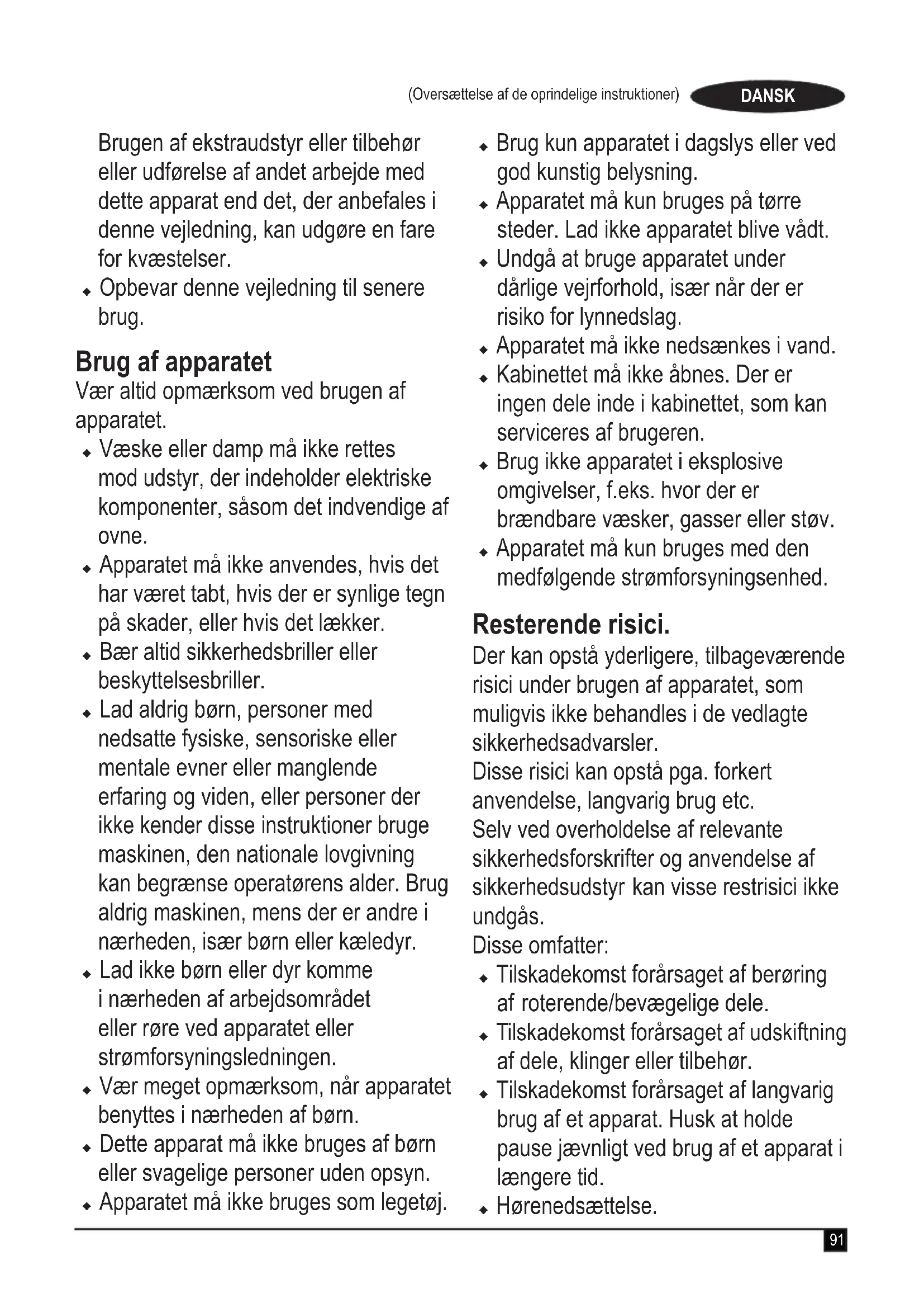 Opladeren er kun beregnet til indendørs brug. Læs brugervejledningen, før værktøjet tages i brug.94 (Oversættelse af de oprindelige instruktioner)DANSK Elektricitet og sikkerhed