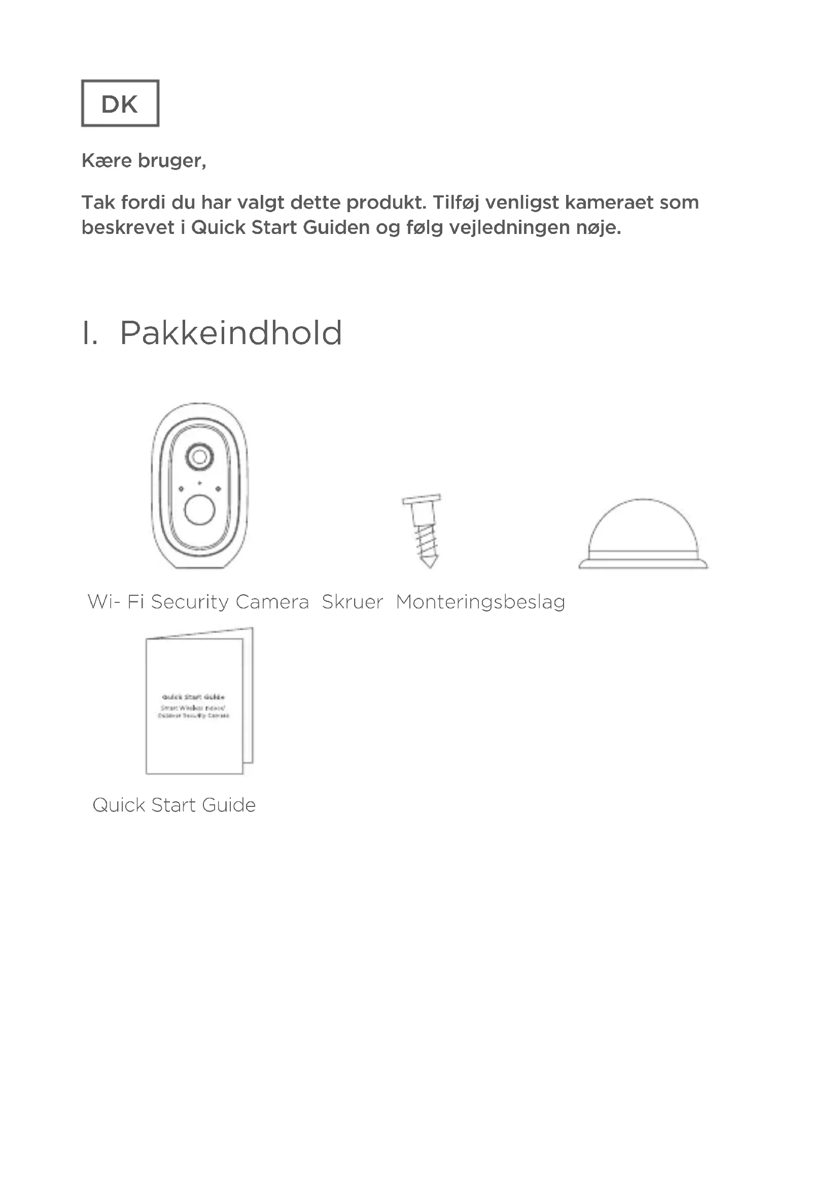 Javasolt telepítési magasság: 2-3 méterDK Add-on Camera Quick Start GuideDK Kære bruger, Tak fordi du har valgt dette produkt. Tilføj venligst kameraet som beskrevet i Quick Start Guiden og følg vejledningen nøje.
