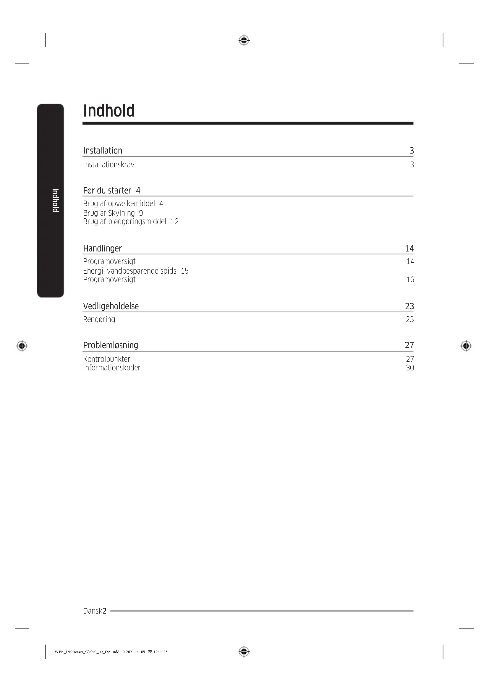 derefter trykke ned den. BEMÆRK Der er ingen separat knap, der er specik for brugen af opvasketabletter. WEB_Dishwaser_Global_00_DA.indd 7 2021-04-09 12:04:25Dansk8 Før du starter Før du starter