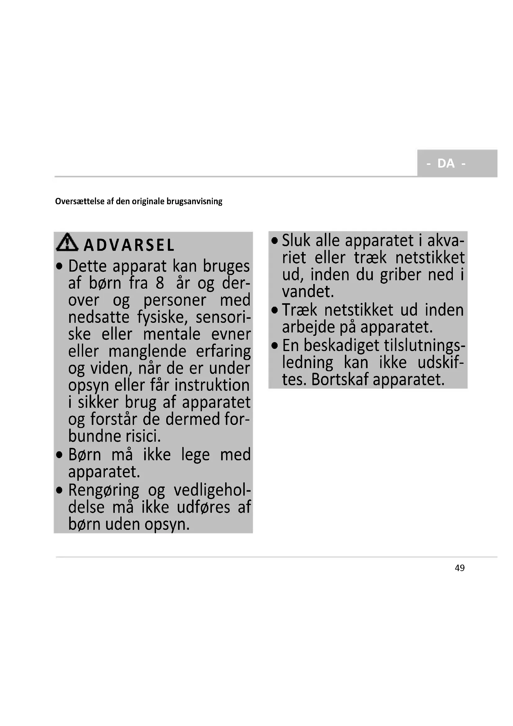 - DA - Oversættelse af den originale brugsanvisning