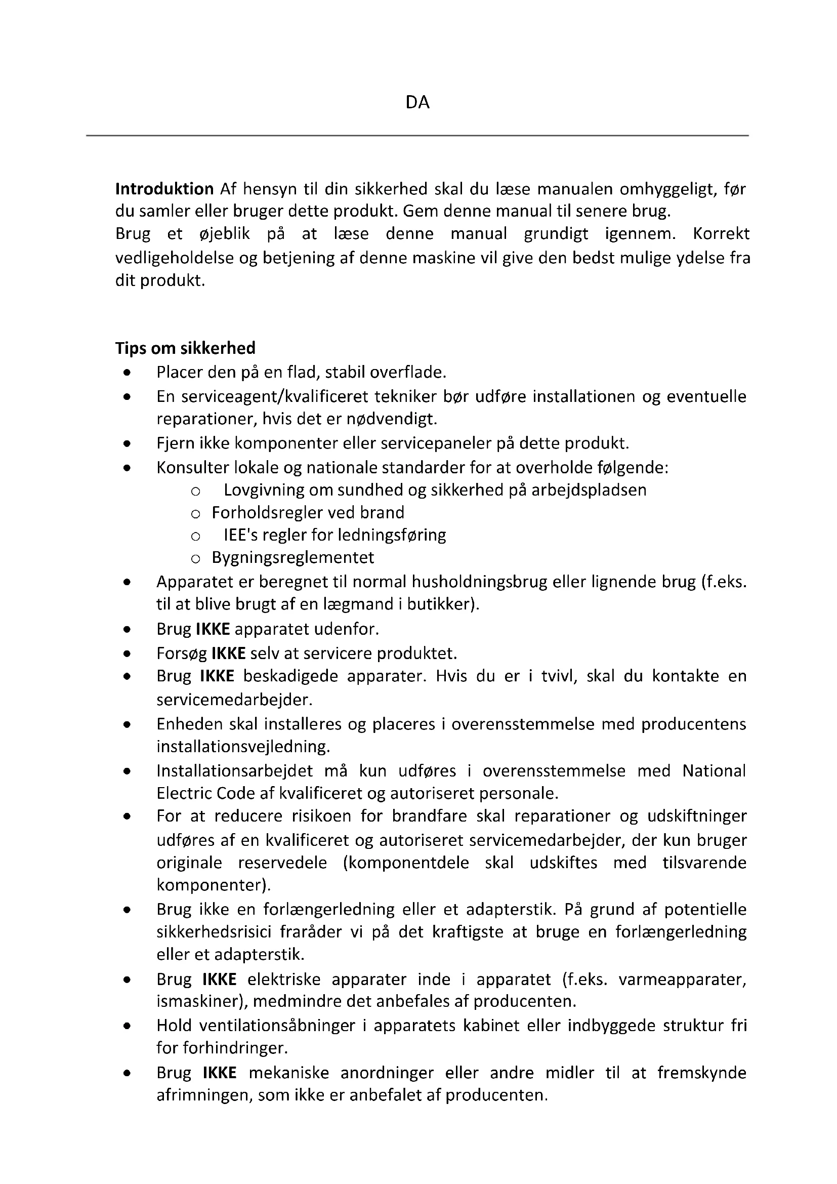- Apparatet er beregnet til normal husholdningsbrug eller lignende brug (f.eks. til at blive brugt af en lægmand i butikker).