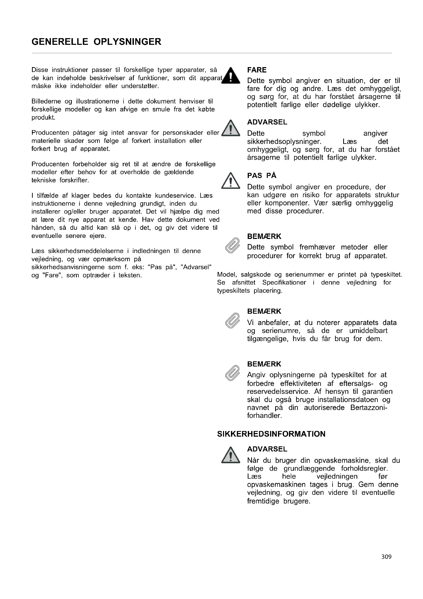 Denne vegjledning vil hjælpè dig med at lære at bruge og pleje dit Bertazzoni-apparat pà den sikreste og mest effektive mäde, sáledes at det kan give dig den størst mulige tilfredsstellelse mange ár ud i fremtiden.