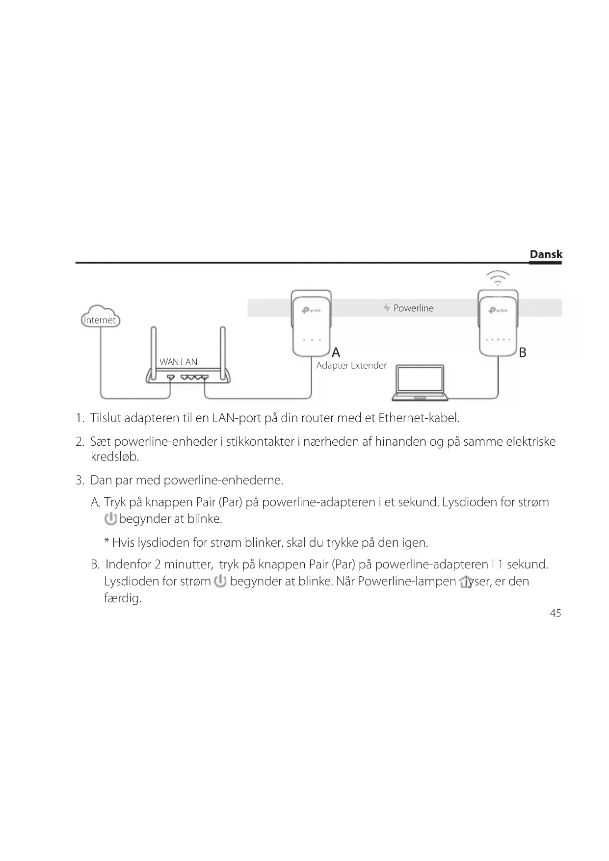 Tip: Du kan tilføje flere powerline-enheder til det eksisterende powerline-netværk ved at danne par med disse enheder. Bemærk