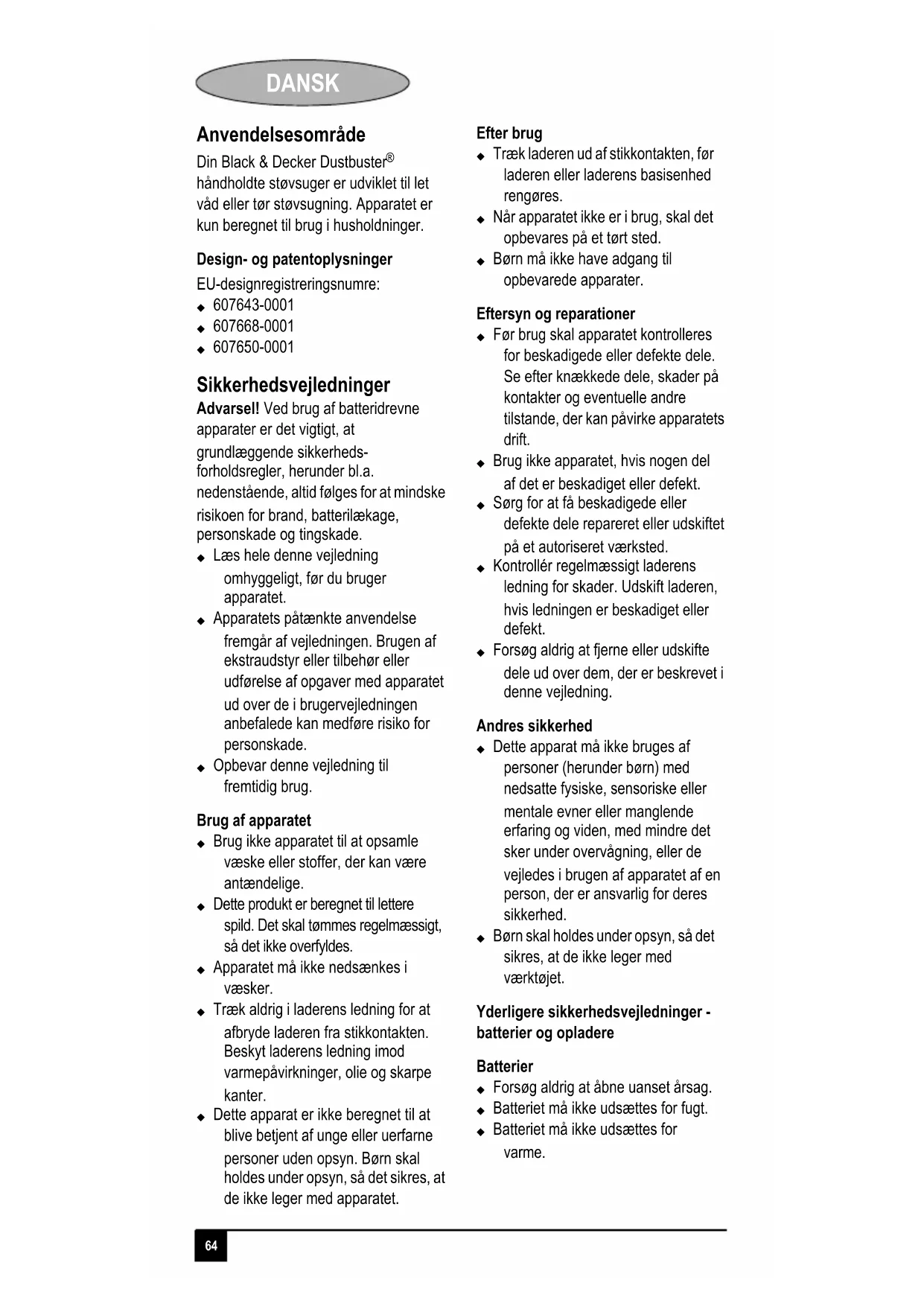 Gå venligst ind på vores websted www.blackanddecker.dk for at registre dit nye produit og for at blive holdt ajour om nyeprodukter og specialtilbud. Der findes yderligere oplysninger om mærket Black & Decker og vores produktsortiment på adressen www.blackanddecker.dk.