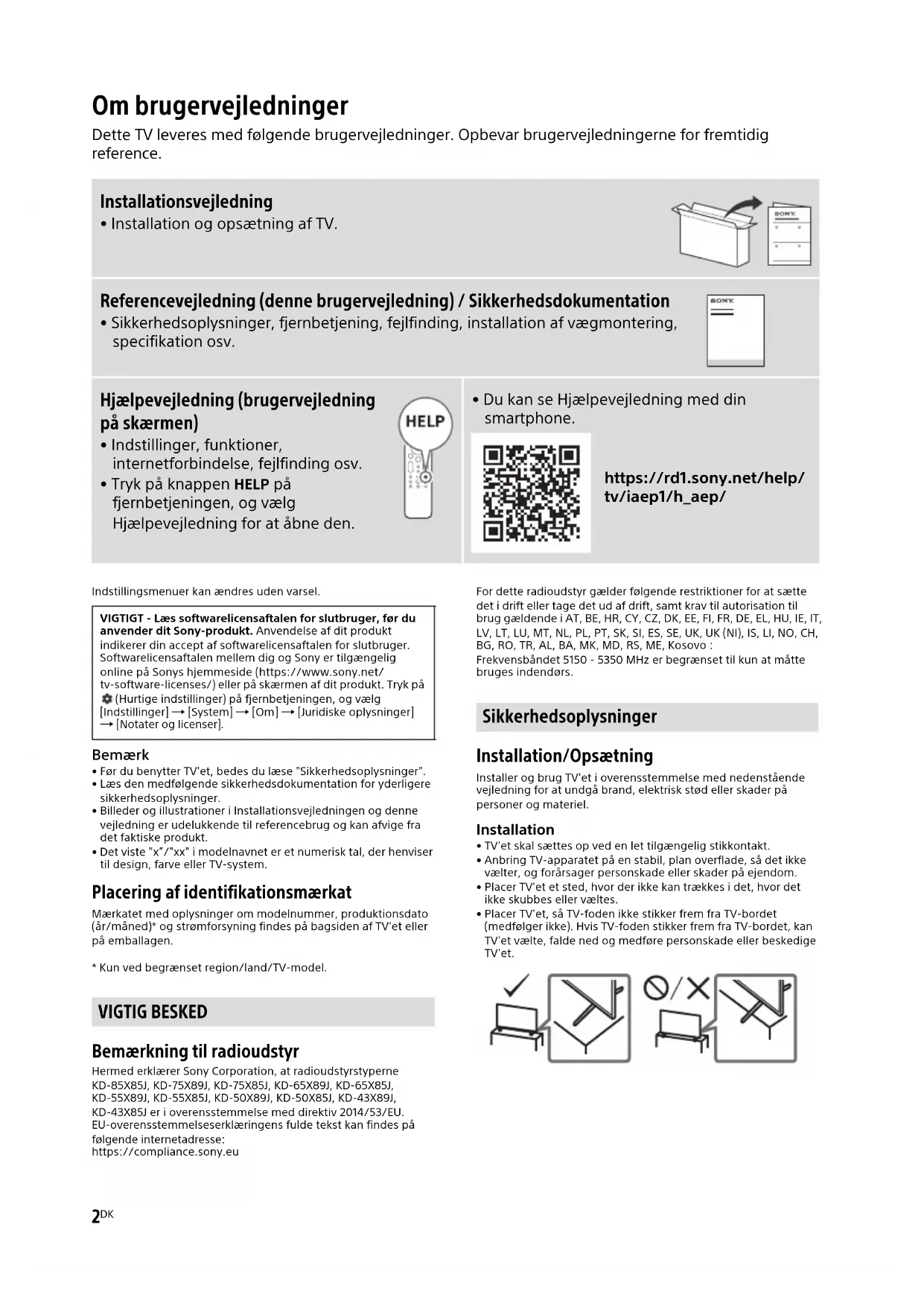 Download vejledningen til din Fjernsyn i PDF-format gratis! Find din vejledning KD75X85TJ - SONY og tag din elektroniske enhed tilbage i hånden. På denne side er alle dokumenter nødvendige for brugen af din enhed offentliggjort. KD75X85TJ af mærket SONY.
