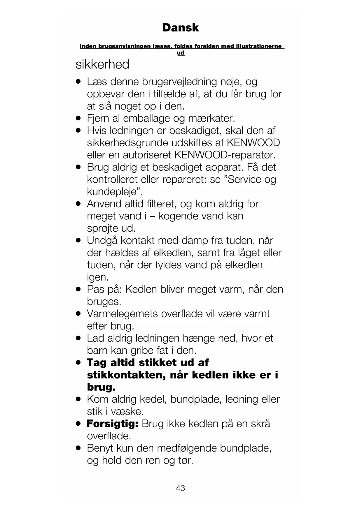 Anvend kun apparatet til husholdningsbrug. Kenwood påtager sig intet erstatningsansvar, hvis apparatet ikke anvendes korrekt eller disse instruktioner ikke følges.46 English vedligeholdelse og rengøring