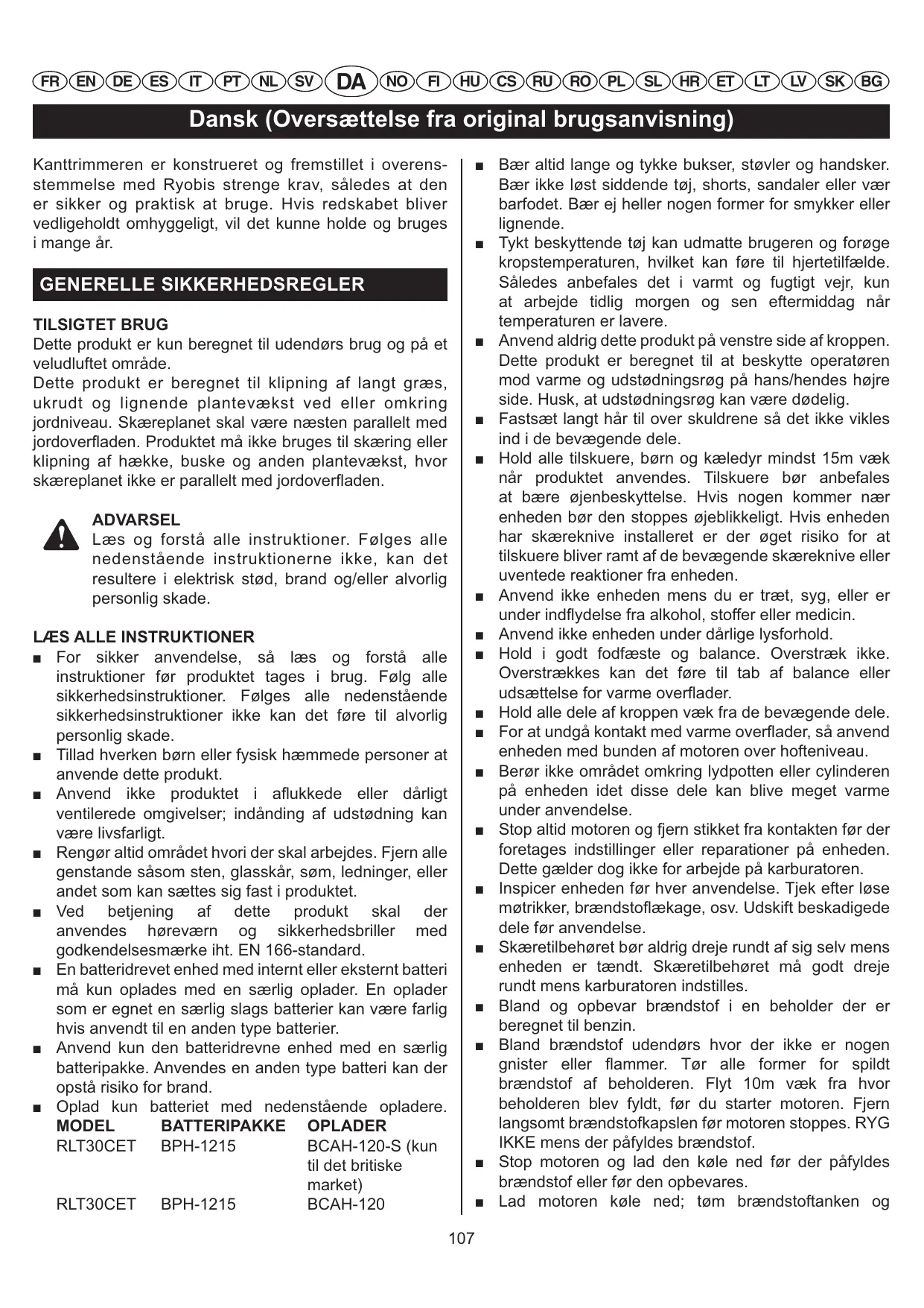 BRUGSANVISNING RLT30CET RYOBI