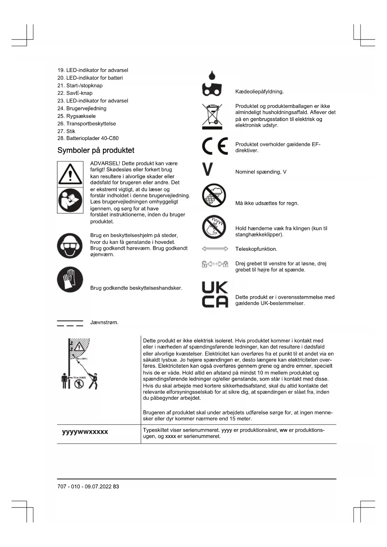 707 - 010 - 09.07.2022 83Bemærk: Andre symboler/etiketter på produktet