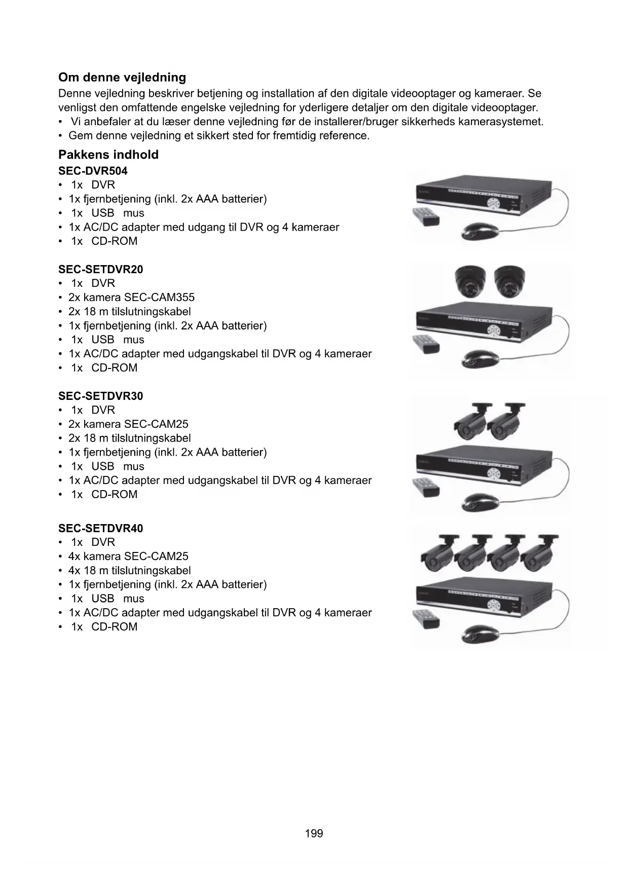 - Bort skaffelse (s. 211)199 Om denne vejledning Denne vejledning beskriver betjening og installation af den digitale videooptager og kameraer. Se venligst den omfattende engelske vejledning for yderligere detaljer om den digitale videooptager.