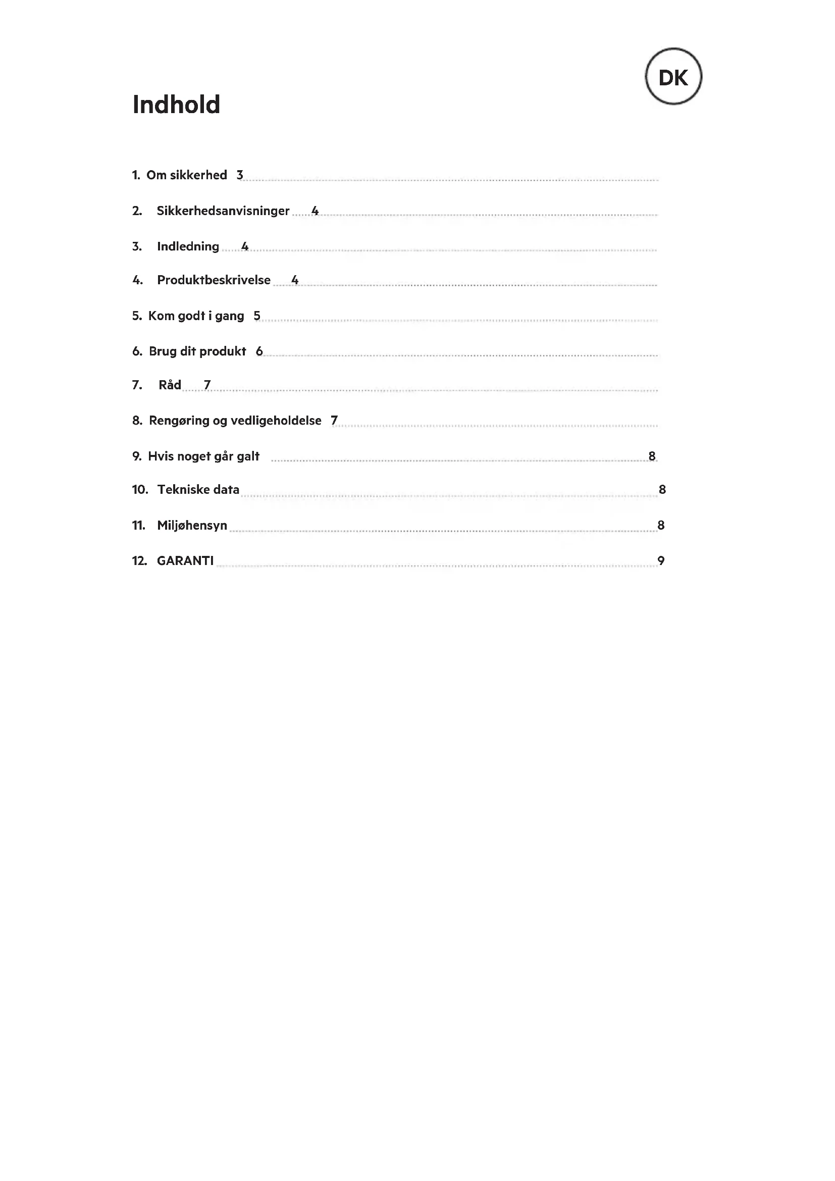 - Dette produkt er udelukkende til husholdningsbrug36 2 SIKKERHEDSANVISNINGER