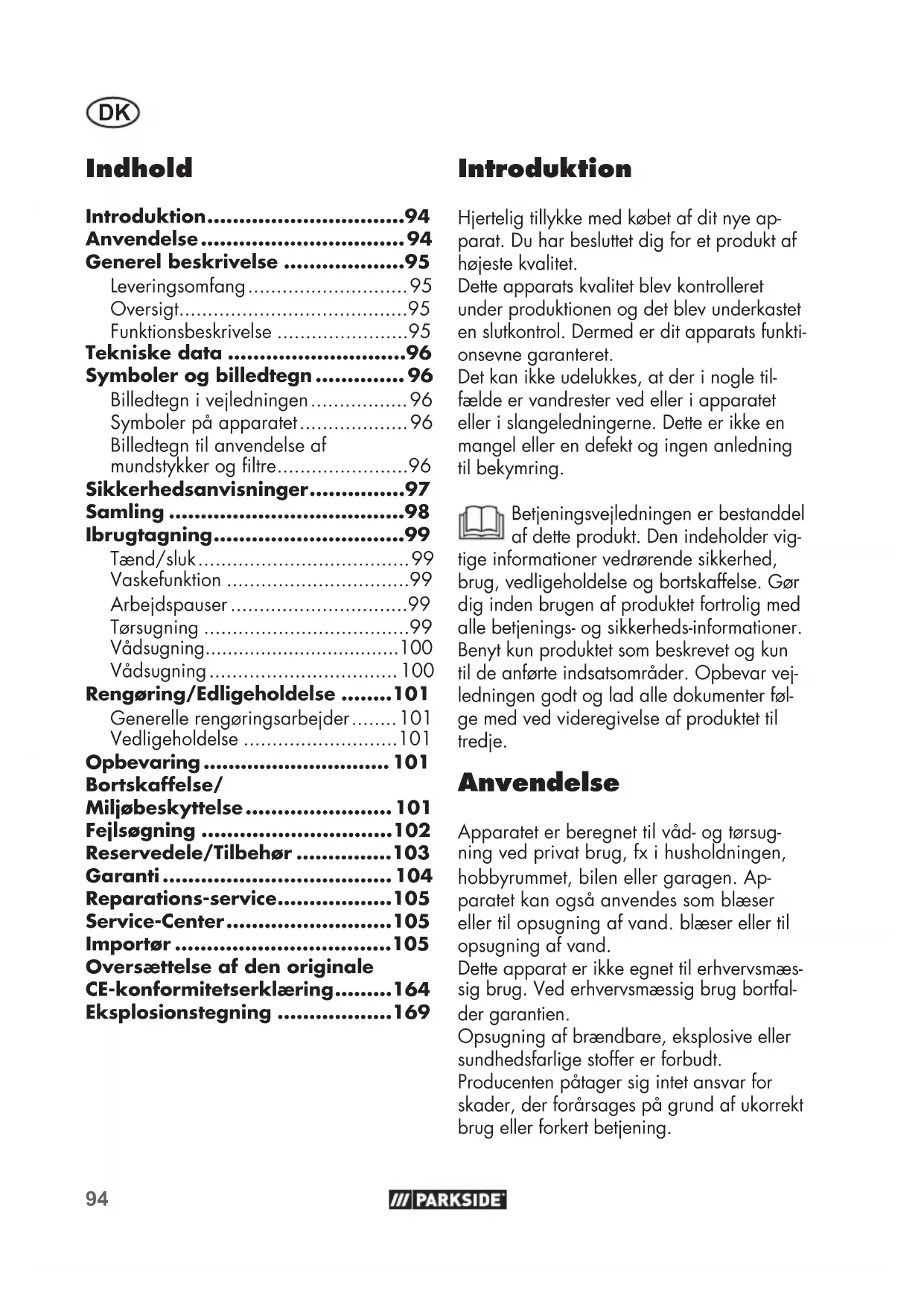 PWS 20 B2 - Støvsuger PARKSIDE - Gratis brugsanvisning og manual