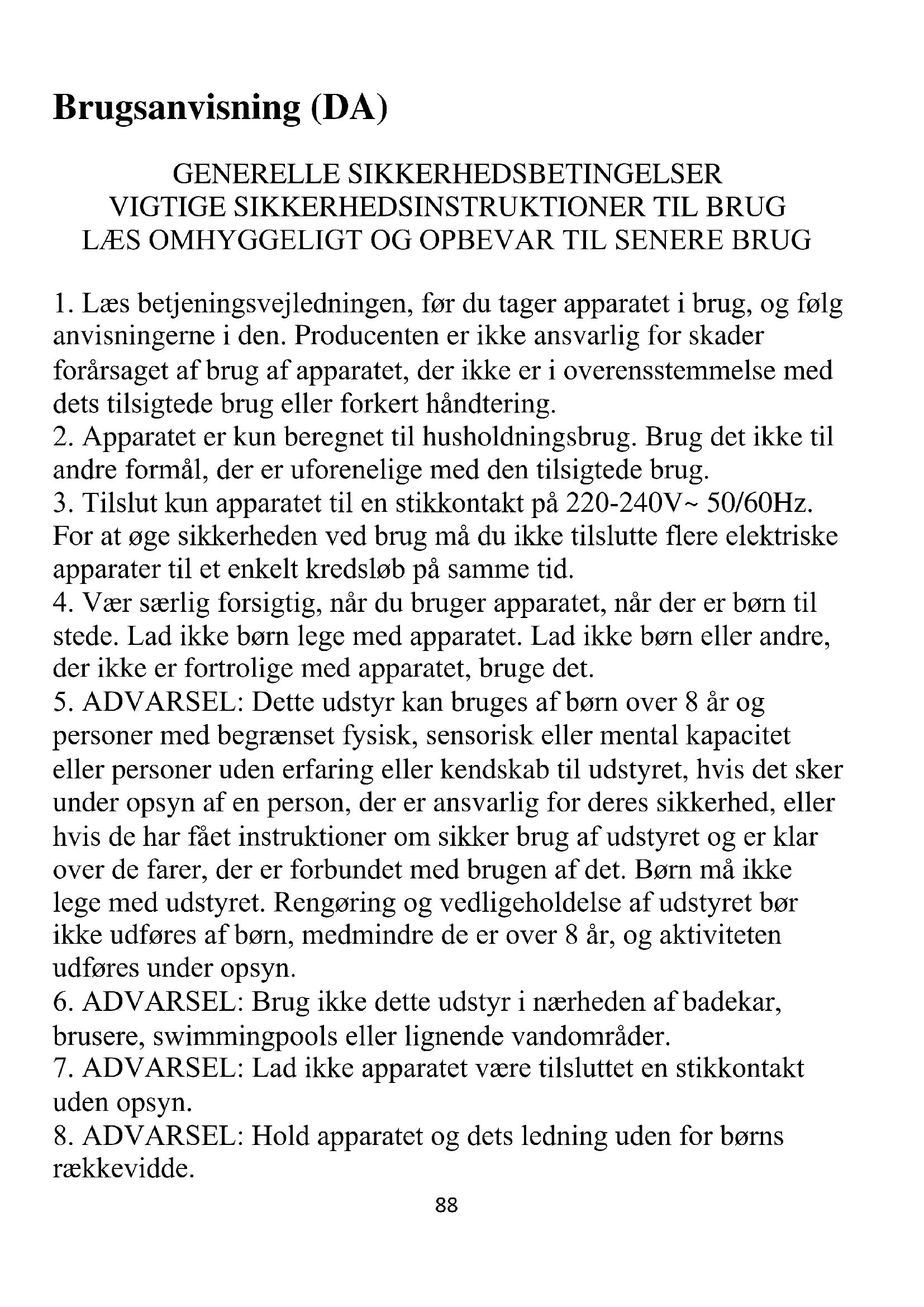 5. ADVARSEL: Dette udstyr kan bruges af børn over 8 år og