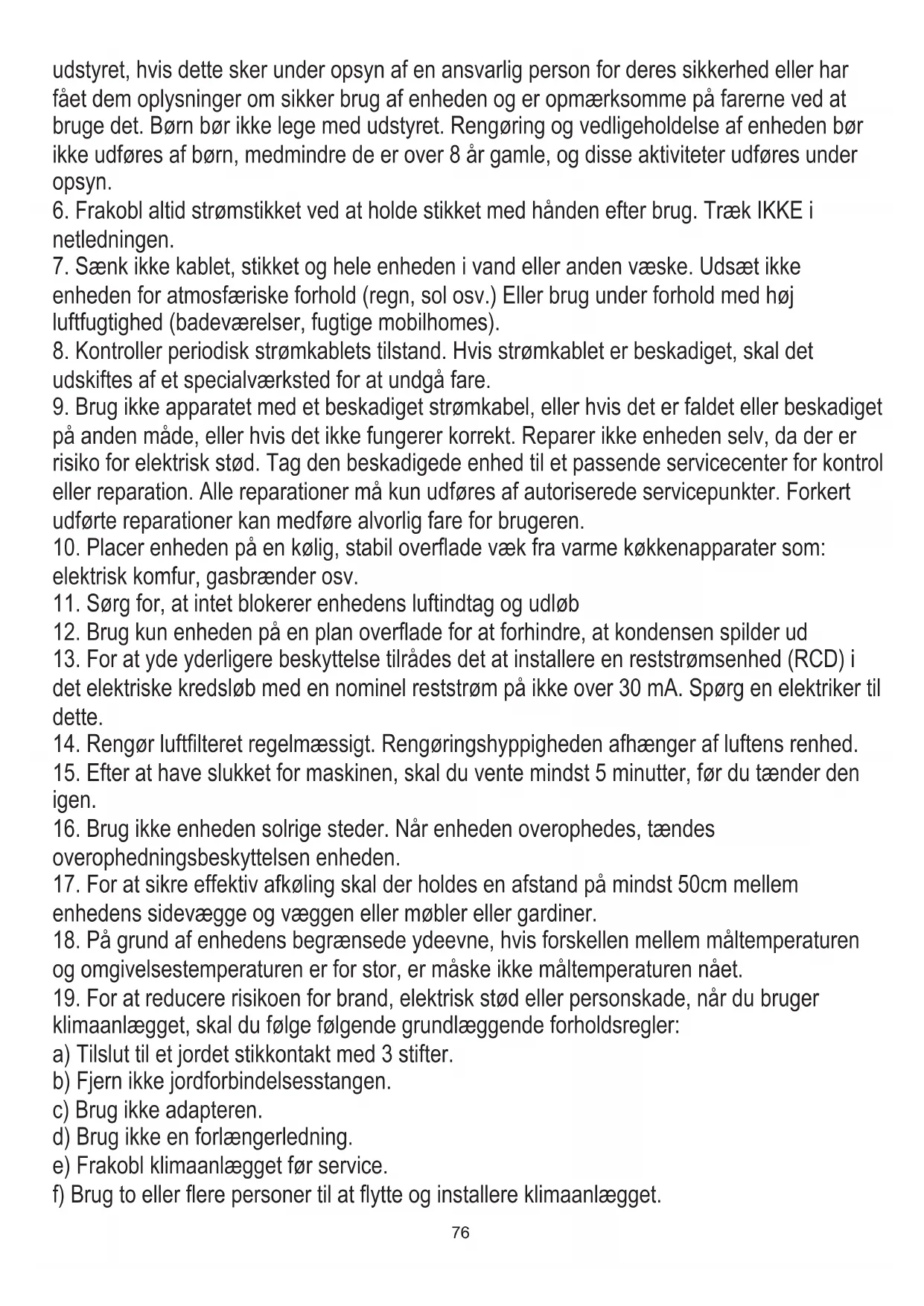 17. For at sikre effektiv afkøling skal der holdes en afstand på mindst 50cm mellem