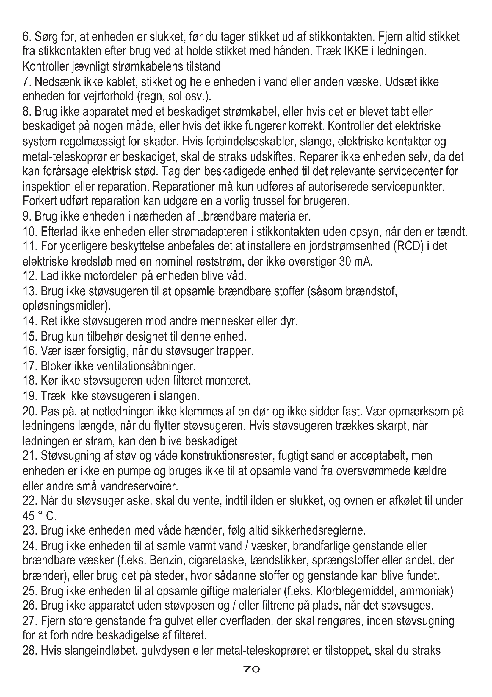 28. Hvis slangeindløbet, gulvdysen eller metal-teleskoprøret er tilstoppet, skal du straks71