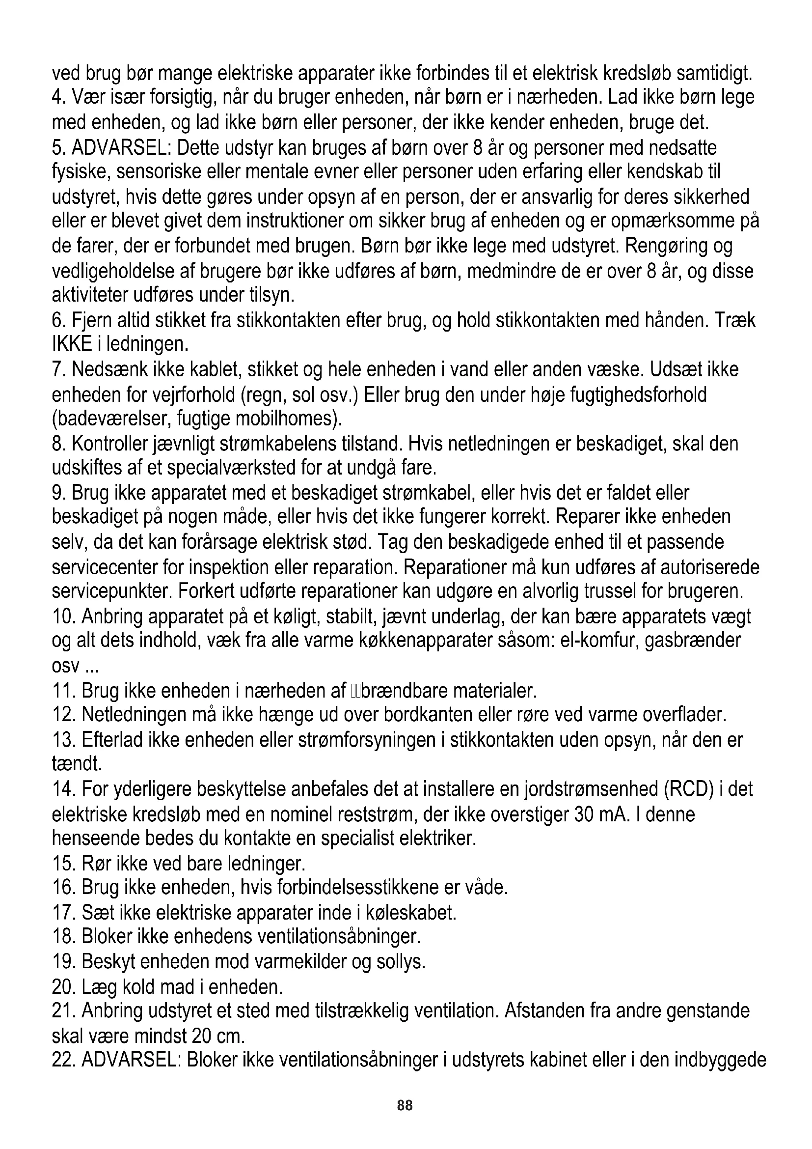 5. ADVARSEL: Dette udstyr kan bruges af børn over 8 år og personer med nedsatte