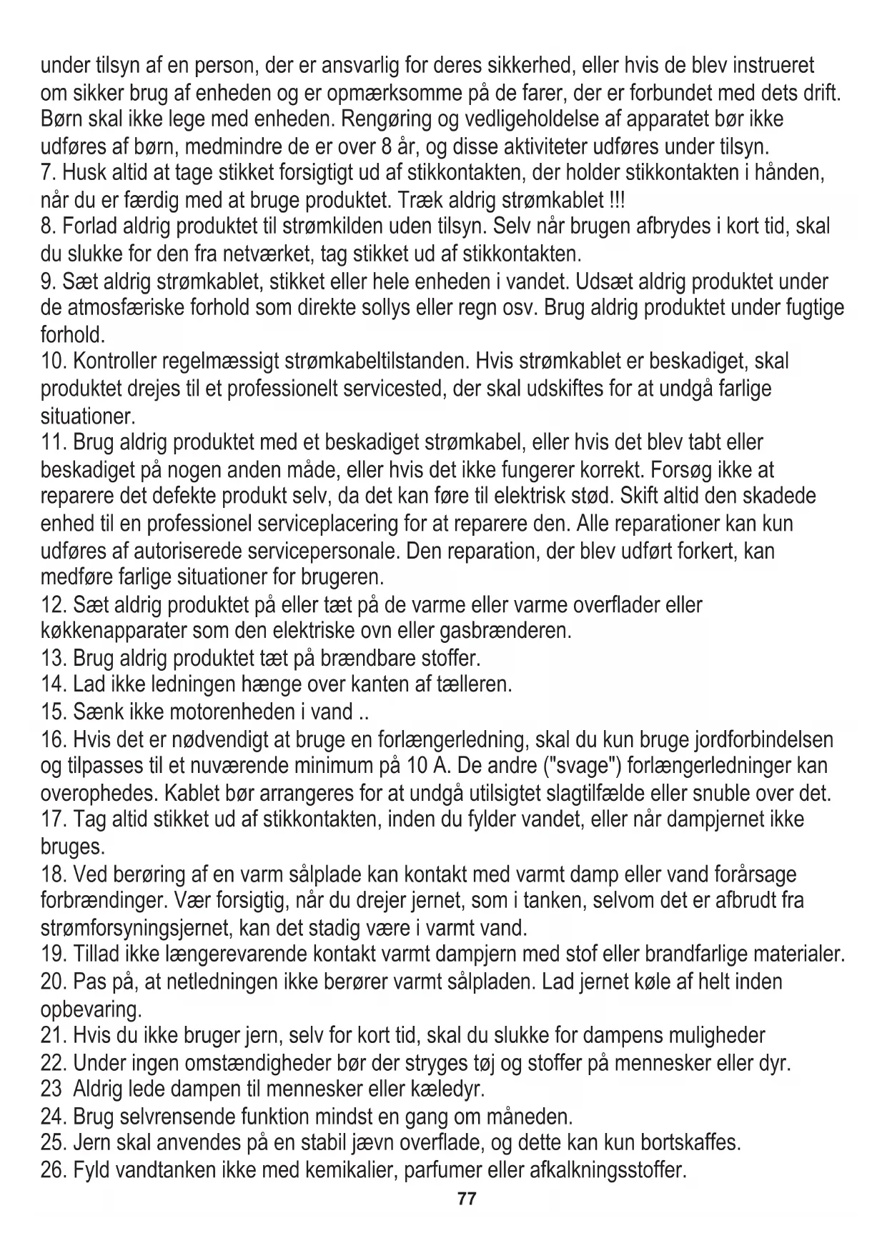 25. Jern skal anvendes på en stabil jævn overflade, og dette kan kun bortskaffes.
