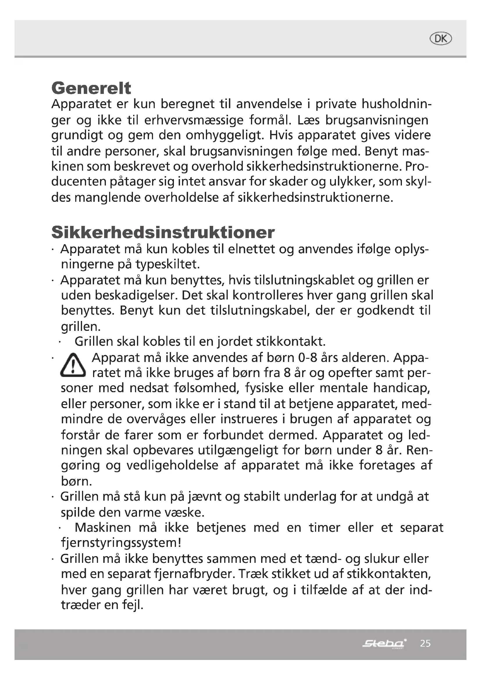 Find enhedens vejledning gratis DF 90 STEBA i PDF-format.