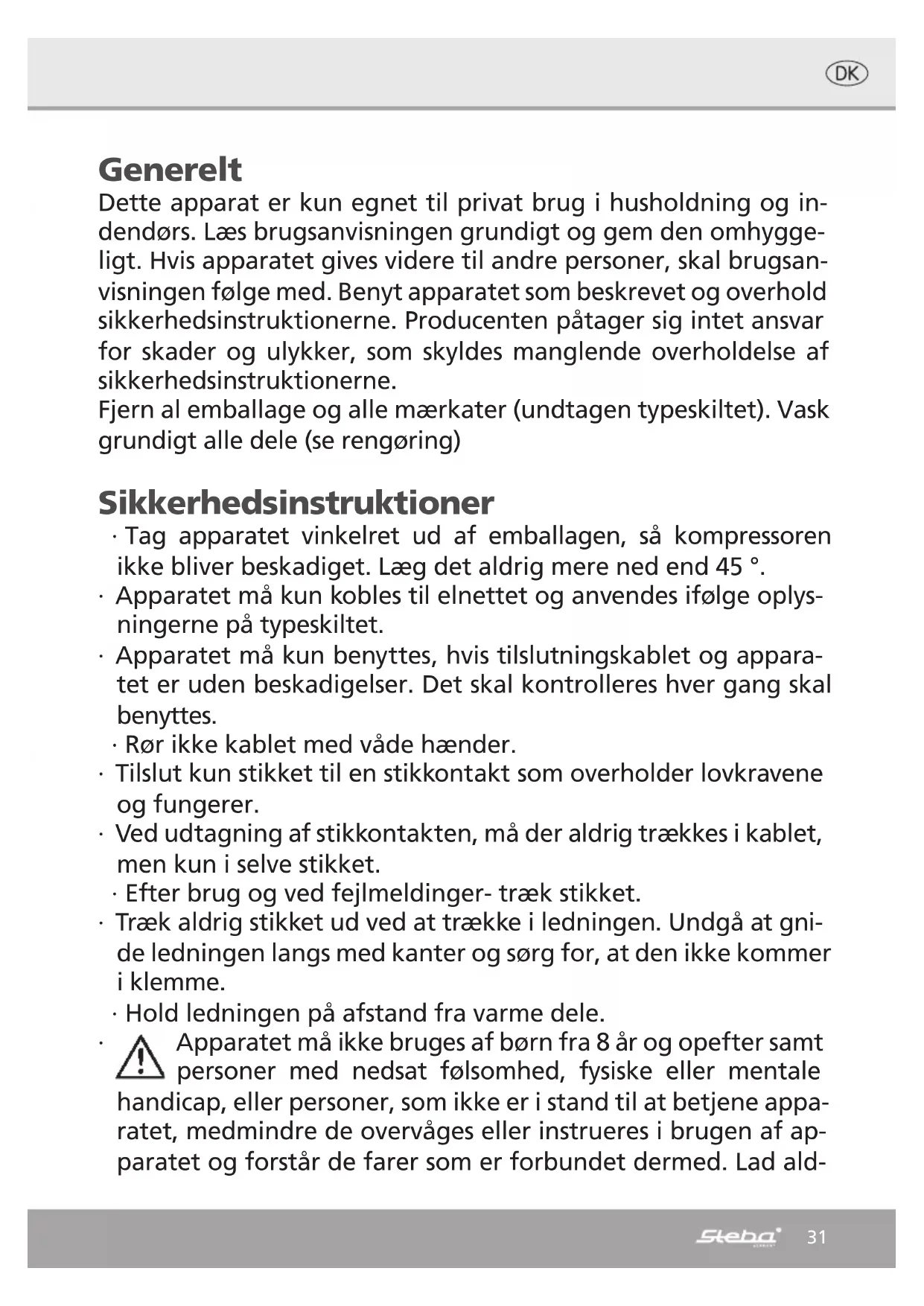 BRUGSANVISNING IC 150 STEBA