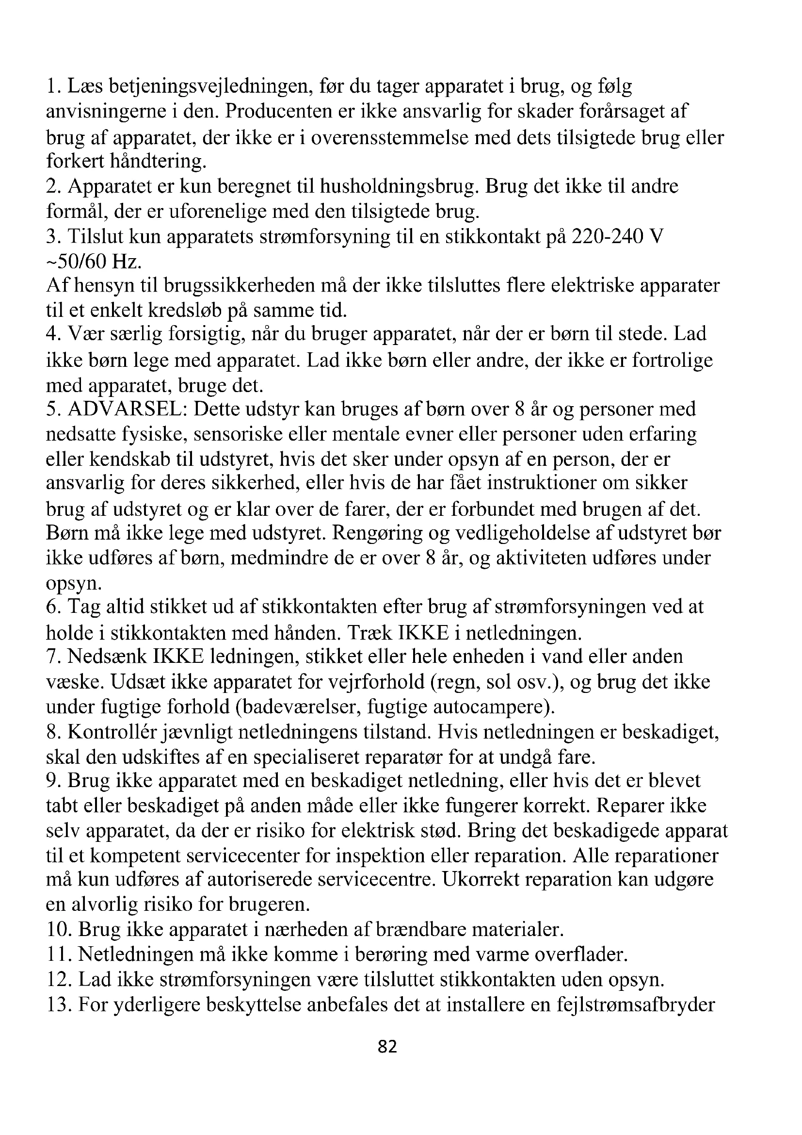5. ADVARSEL: Dette udstyr kan bruges af børn over 8 år og personer med