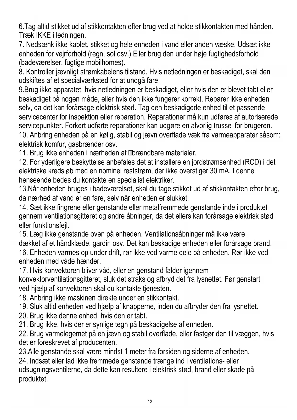 17. Hvis konvektoren bliver våd, eller en genstand falder igennem