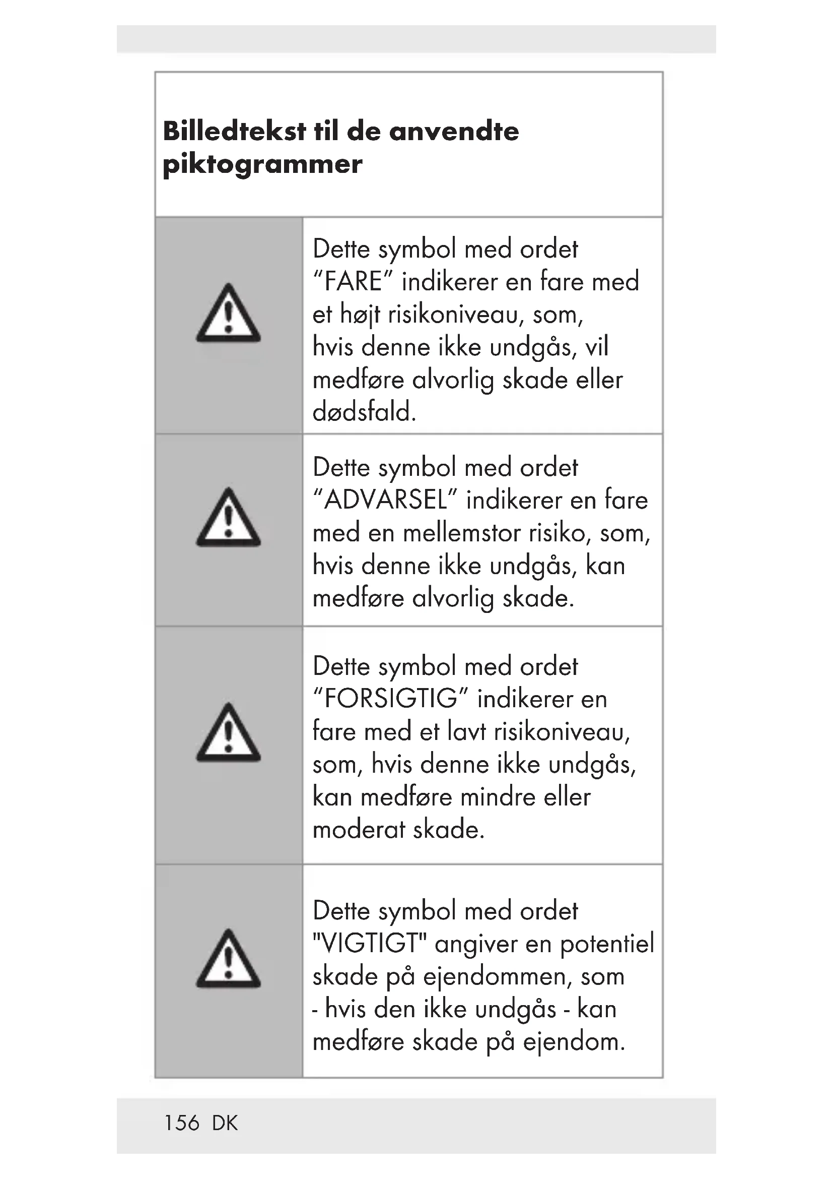 VIGTIGT! RISIKO FOR SKADE PÅ