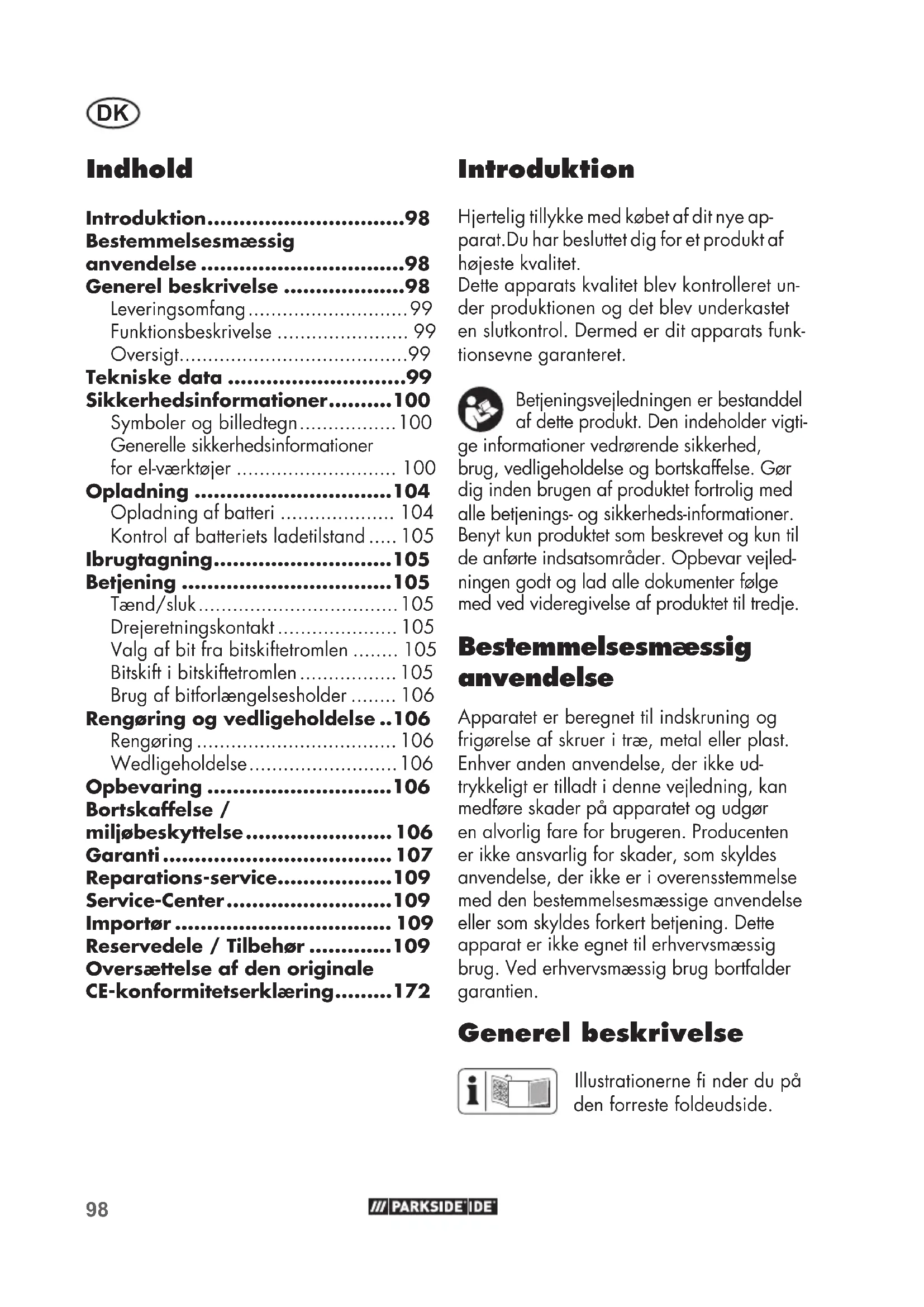 - Indhold Introduktion p. 98