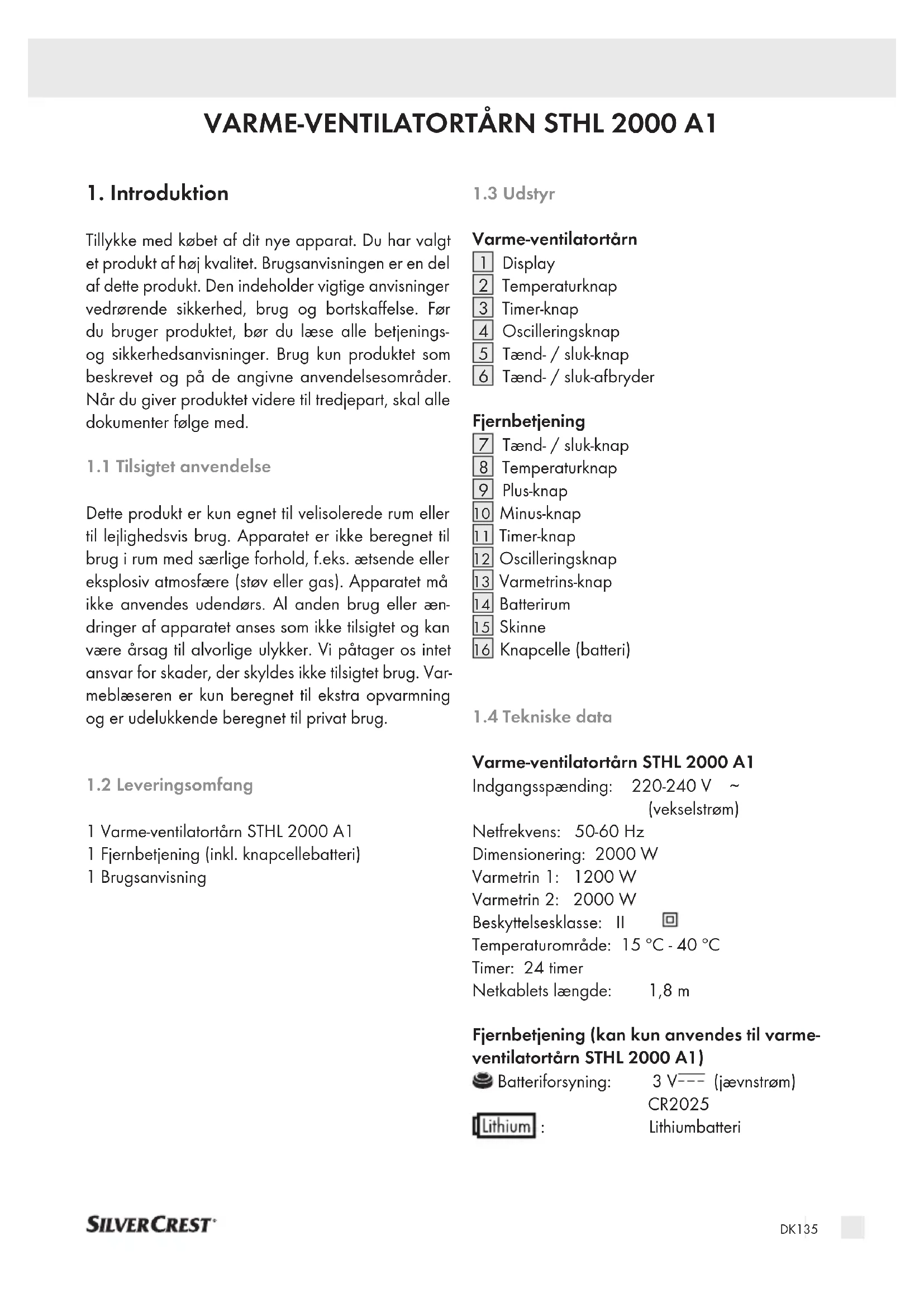 Dette produit er kun egnet til velisolerede rum ellertil lejighedsvis drug. Apparatet er ici beregnet tildrug i rum med særlige forhold, f.eks. aetsende ellereksplosiv atmosfare (stovller gas).Apparatet maikke anvendes udendors. Al anden brug ererandringer af apparatet anses som ici tilsigtet og kanvare arsag til alvorlige ulykker. Vi patarger os intetansvar for skader, der skyldes ici tilsigtet drug.Varmeblaeseren er kun beregnet til ekstra opvarmningog er udelukkende beregnet til privat drug.