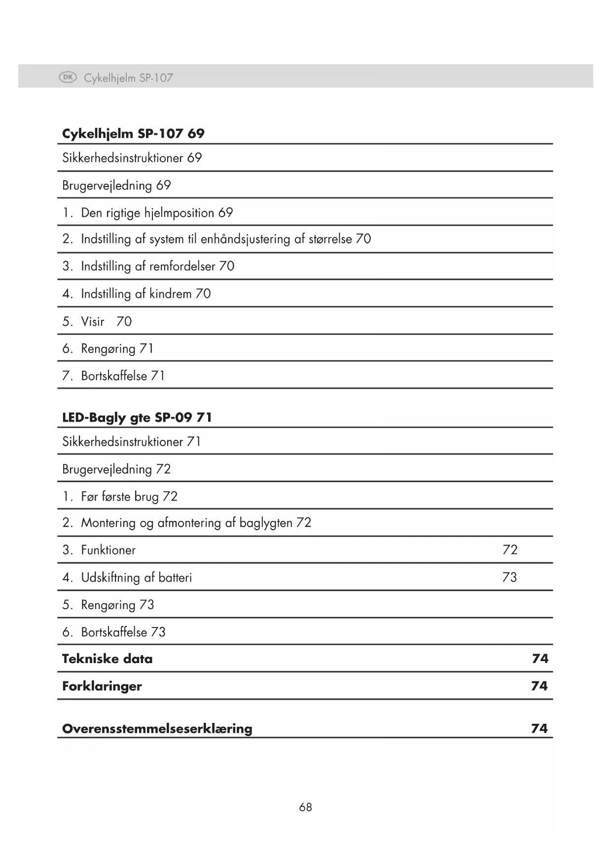 LED-Bagly gte SP-09 71 Sikkerhedsinstruktioner 71 Brugervejledning 72