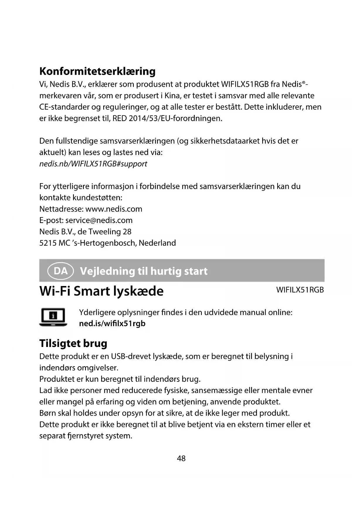 BRUGSANVISNING WIFILX51RGB NEDIS