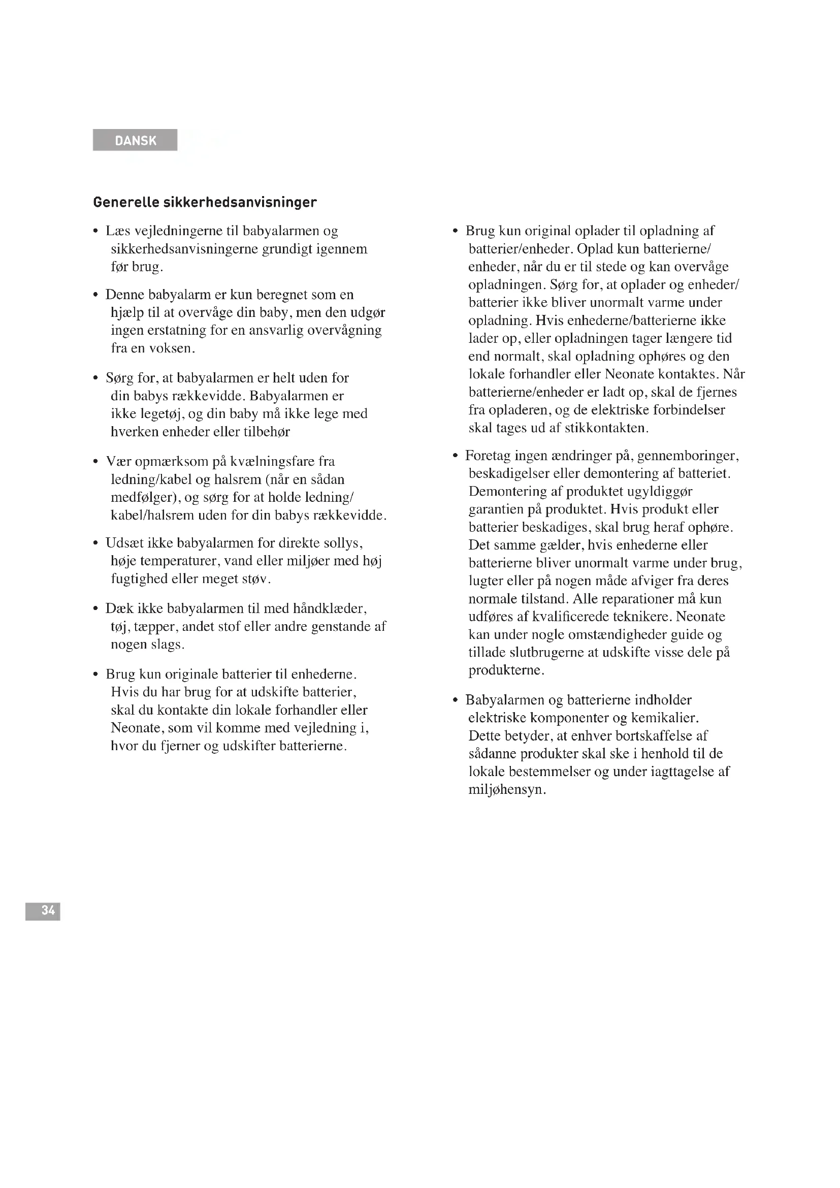 - Læs vejledningerne til babyalarmen og sikkerhedsanvisningerne grundigt igennem før brug.