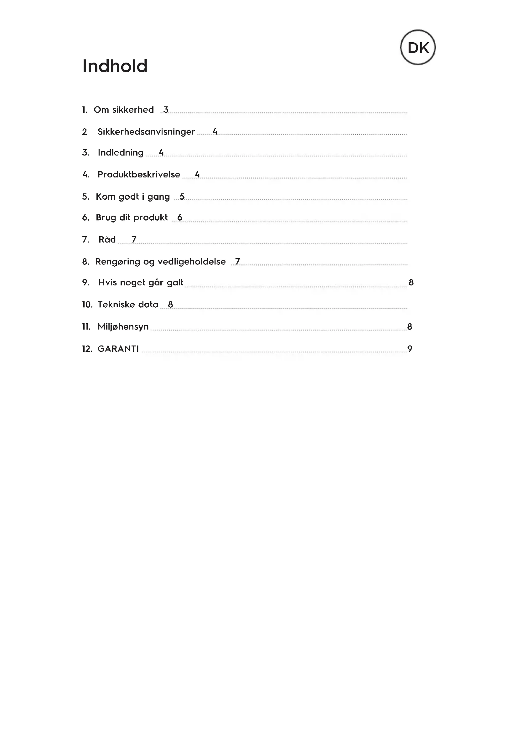 - Dette produkt er udelukkende til husholdningsbrug36 2 SIKKERHEDSANVISNINGER