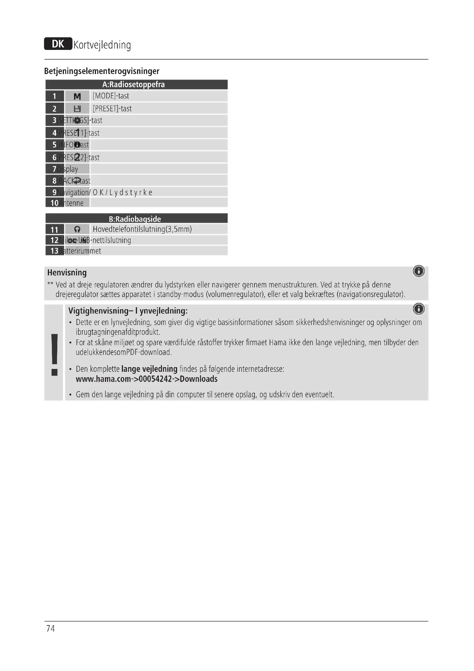 DR7USB - Radio HAMA - Gratis brugsanvisning og manual