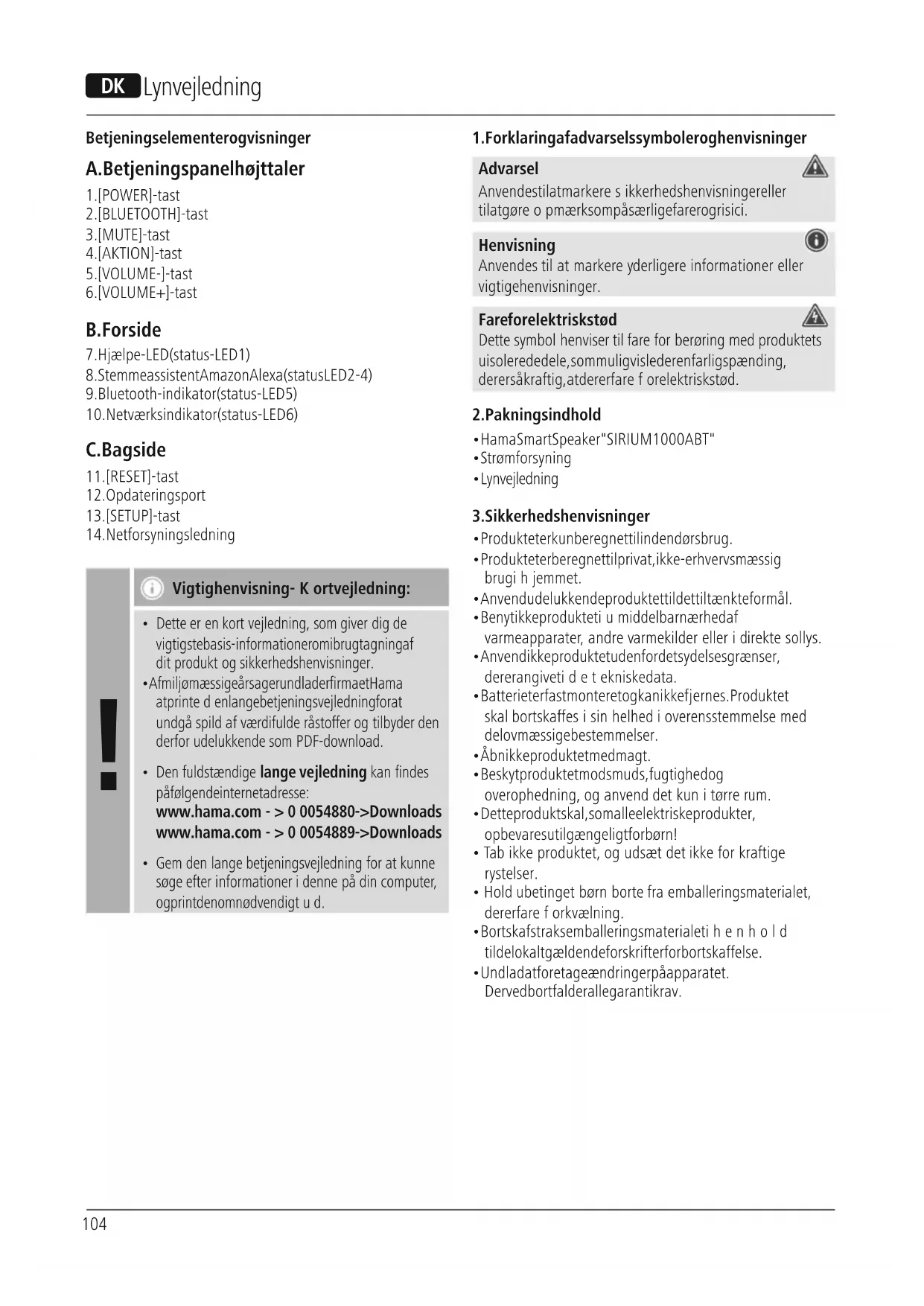 - Af miljømæssige årsager undlader rmaet Hama at printeden lange betjeningsvejledning forat undgå spildafværdifulderåstoffer og tilbyder den derforudelukkende somPDF-download.