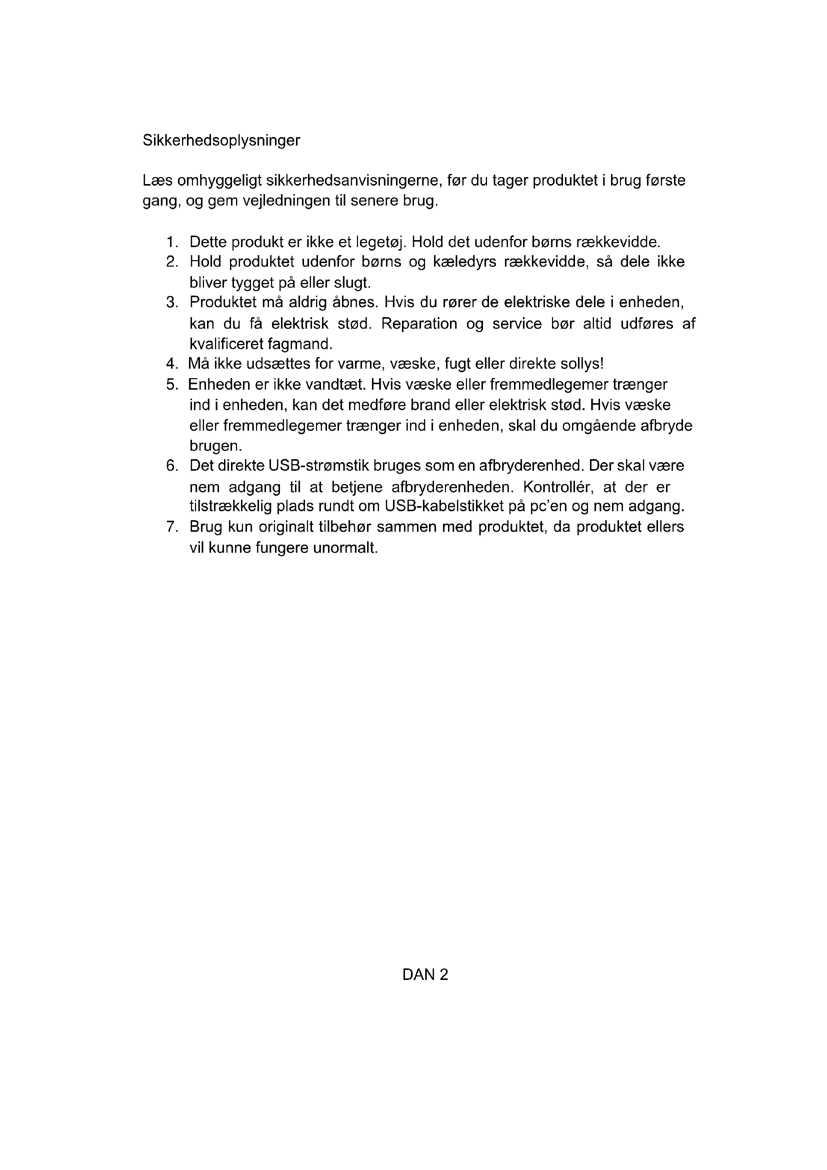 1. Dette produkt er ikke et legetøj. Hold det udenfor børns rækkevidde.