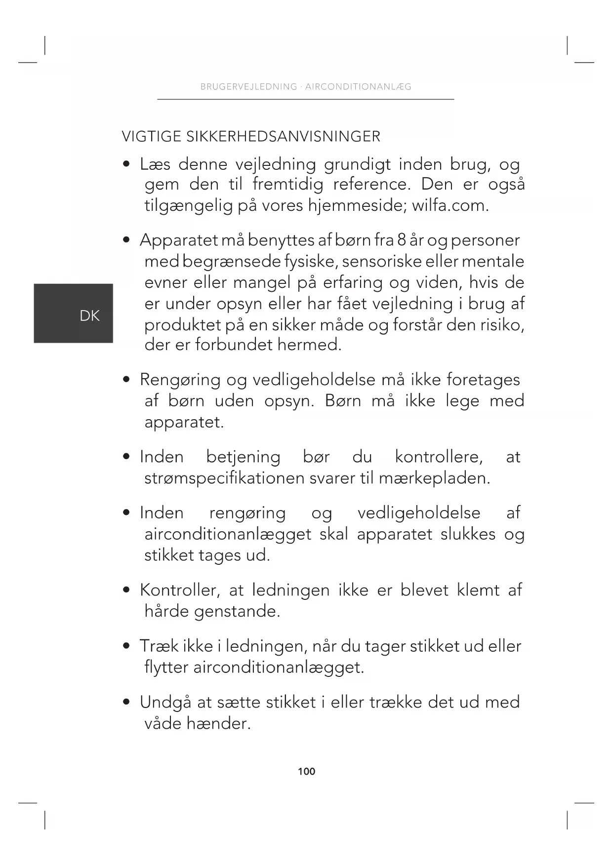 - Læs denne vejledning grundigt inden brug, og gem den til fremtidig reference. Den er også tilgængelig på vores hjemmeside; wilfa.com.
