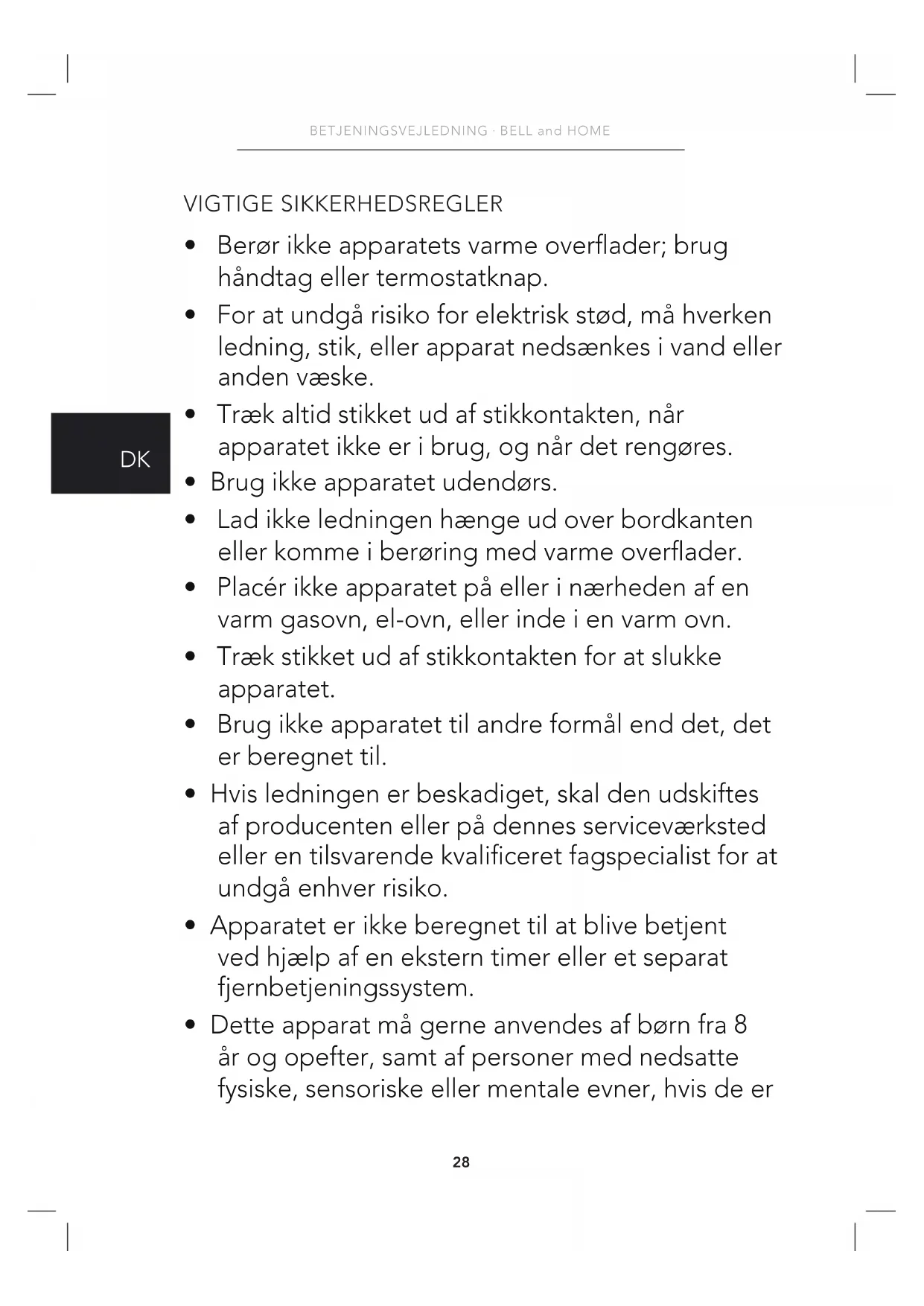 - Dette apparat må gerne anvendes af børn fra 8 år og opefter, samt af personer med nedsatte fysiske, sensoriske eller mentale evner, hvis de er29