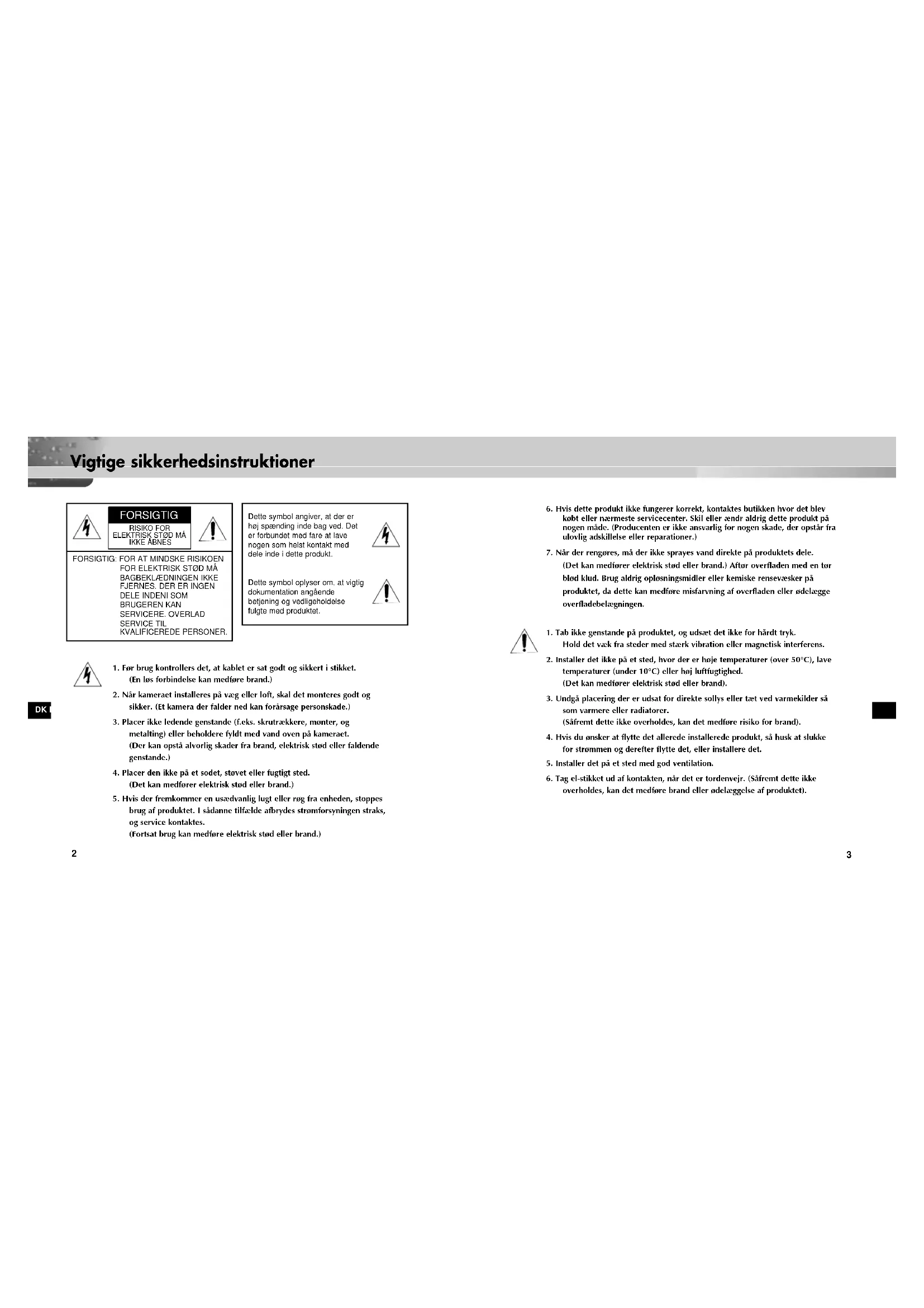 Vigtige sikkerhedsinstruktioner DK DK