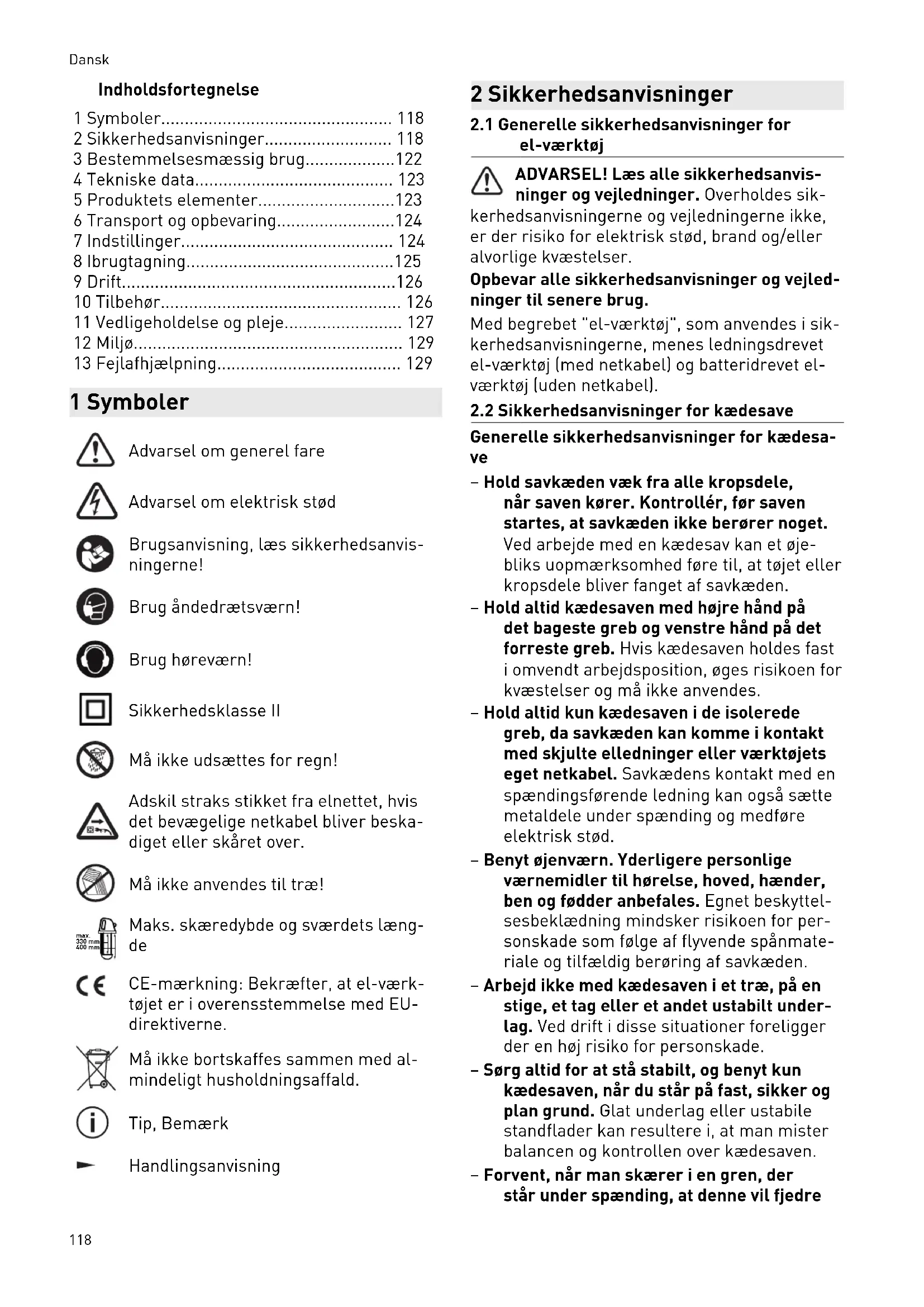 2.2 Sikkerhedsanvisninger for kædesave
