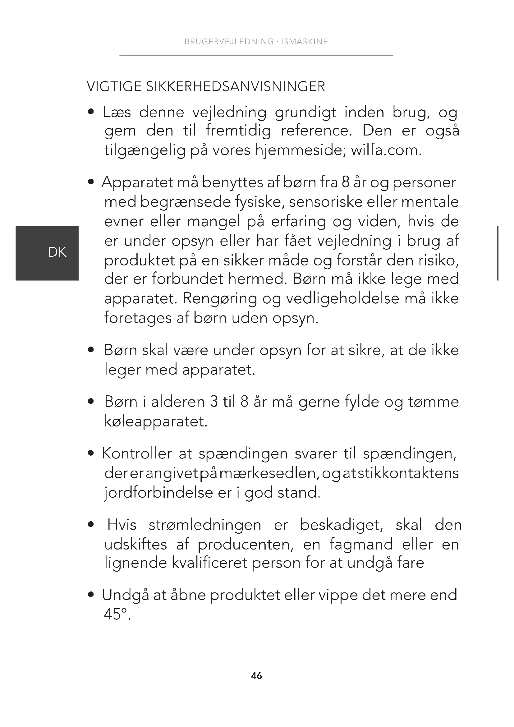 - Læs denne vejledning grundigt inden brug, og gem den til fremtidig reference. Den er også tilgængelig på vores hjemmeside; wilfa.com.