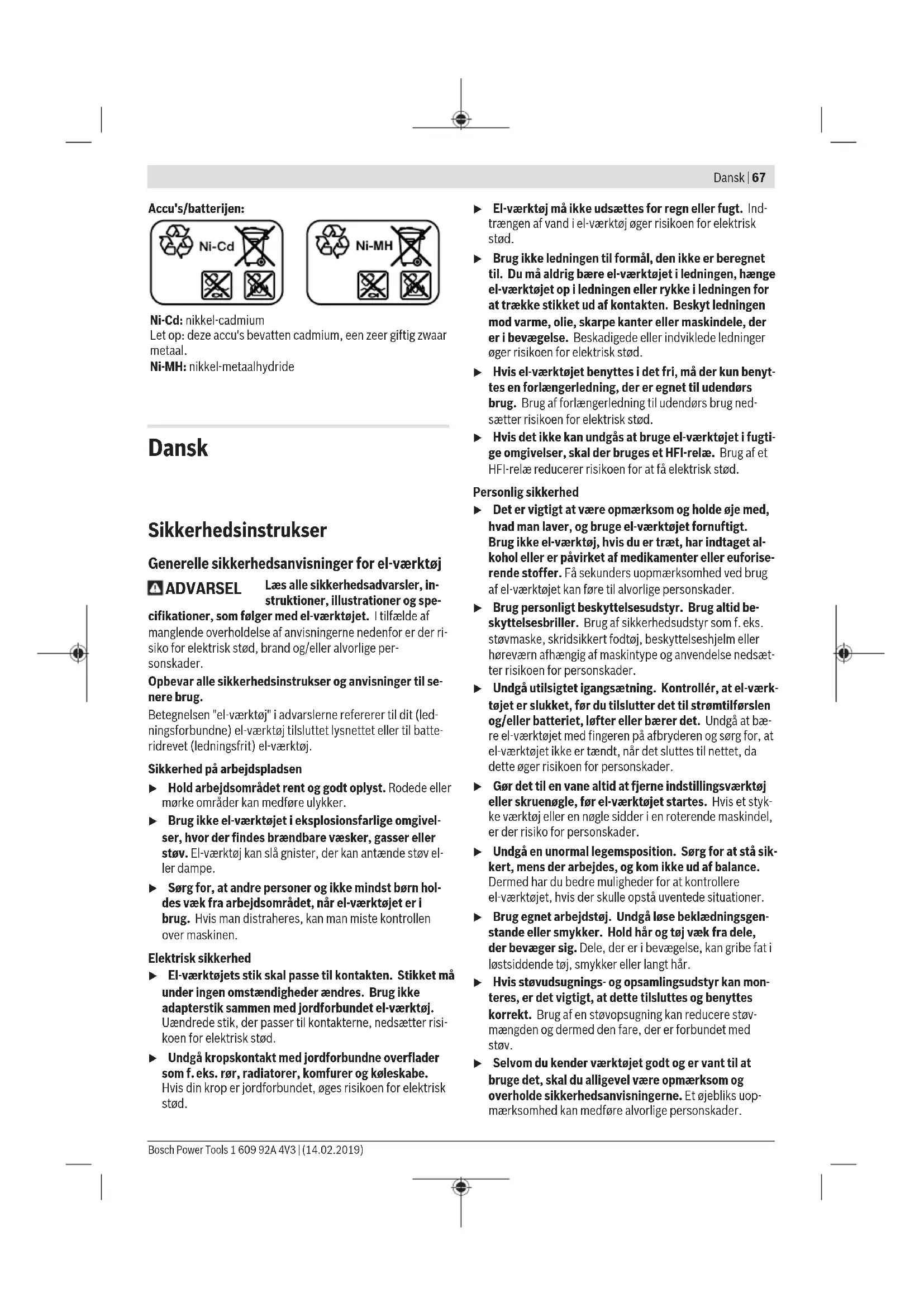 Antal celler 8 10 12 Akku-spænding V 9,6 12,0 14,4 Kapacitet Ah 2,6 2,6 2,6 Vægt svarer til EPTA-Procedure 01:2014 kg 0,55 0,70 0,80 anbefalede ladere AL2450DV AL2450DV AL2450DV 1 609 92A 4V3 | (14.02.2019) Bosch Power ToolsDansk | 71 Støj-/vibrationsinformation Støjemissionsværdier fundet iht. EN62841-2-2. El-værktøjets A-vægtede lydtryksniveau er typisk 70 dB(A). Usikkerhed K=3 dB. Støjniveauet ved arbejde kan overskri- de 80dB(A). Brug høreværn! Vibrationer samlet værdi a